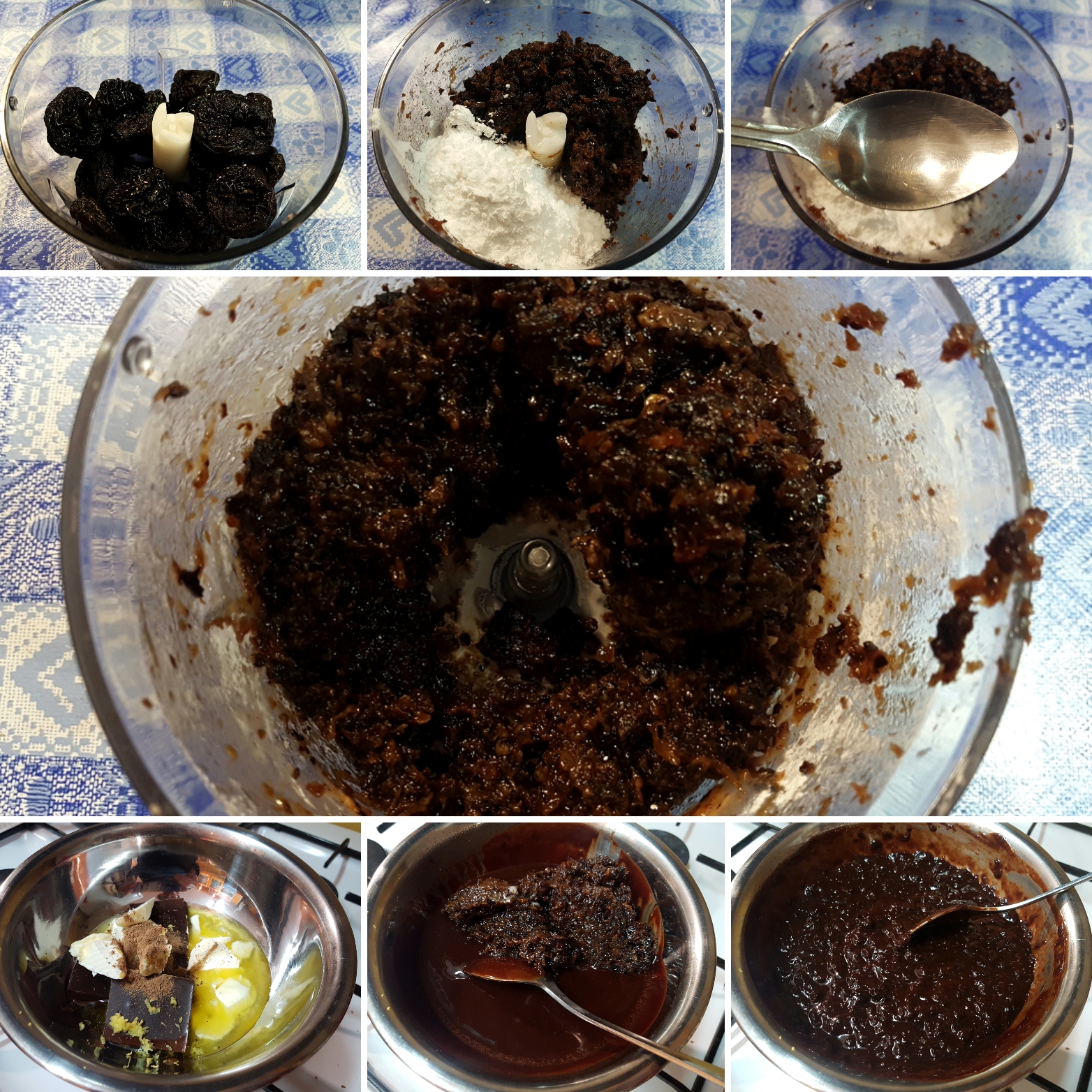 1. Suve šljive sitno iseckajte seckom, pomešajte sa šećerom u prahu, prelijte rakijom i ponovo izmiksajte.