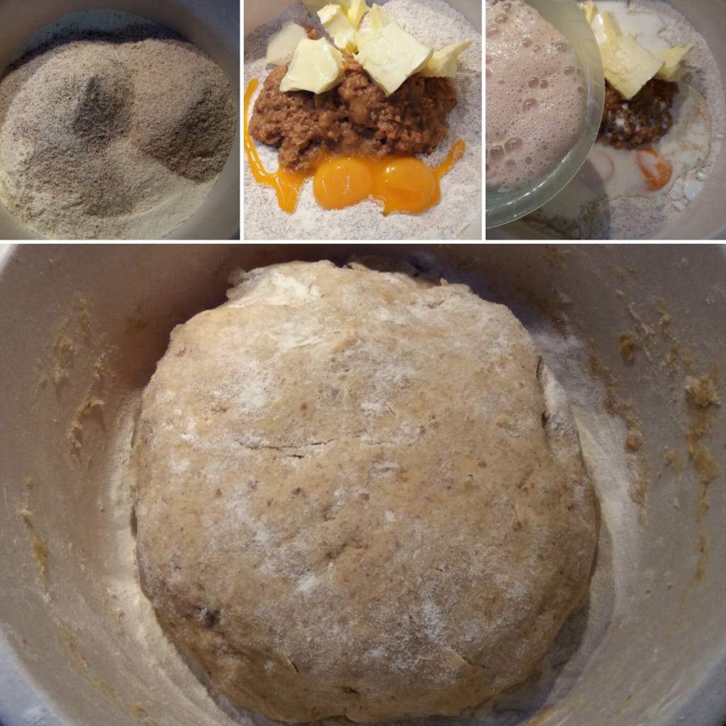 2. U činiju sipajte sve tri vrste brašna, so, omekšali puter, mlevene čvarke, žumanca, mleko, jogurt i nadošao kvasac, te umesite testo. Pokrijte ga čistom kuhinjskom krpom i ostavite da naraste .