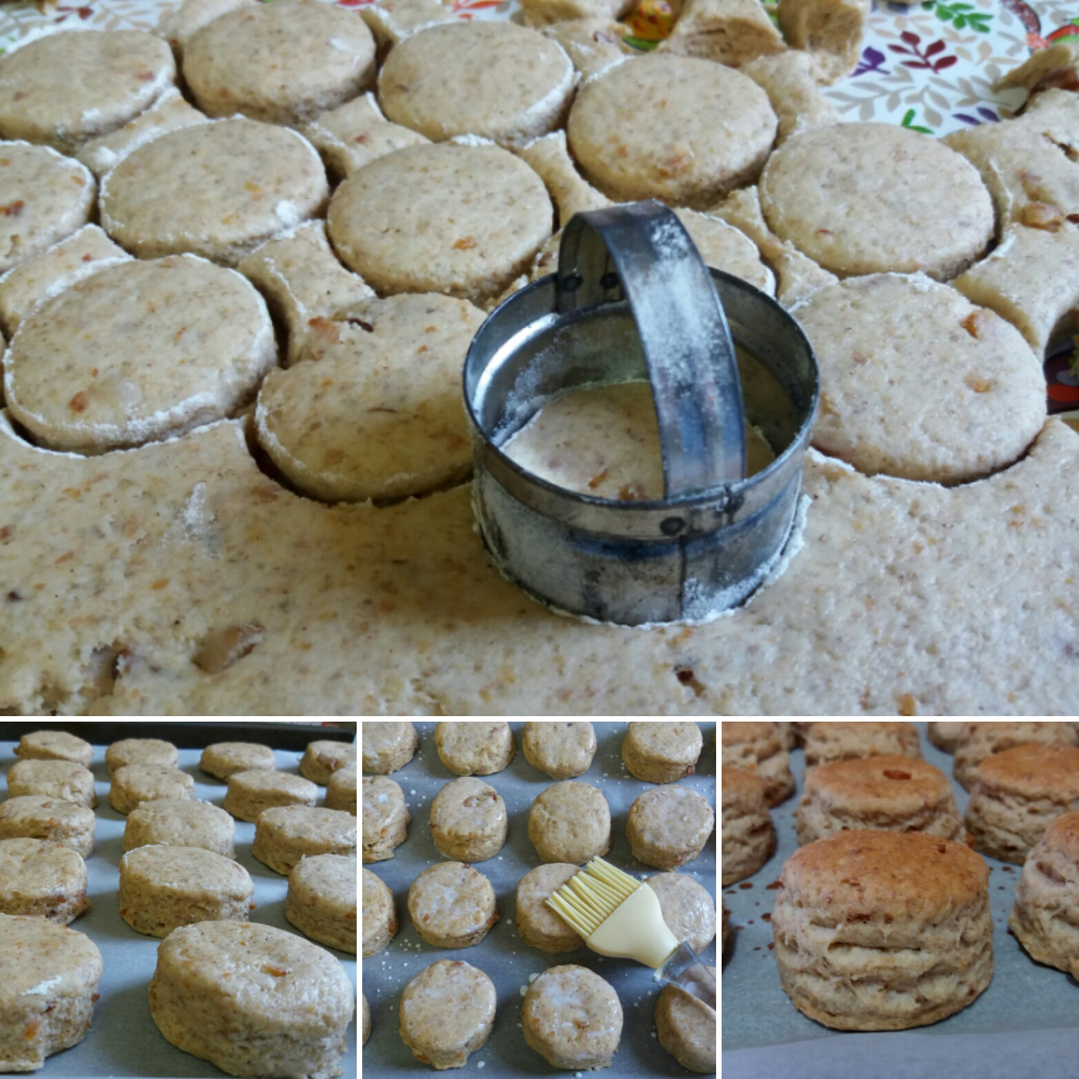 4. Razvaljajte testo ponovo, samo malo deblje, pa okruglom modlom vadite pogačice i ređajte ih na papirom za pečenje postavljen pleh.