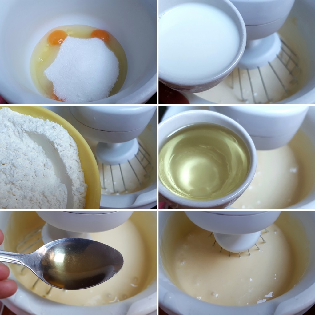3. Naizmenično dodajte mleko i brašno pomešano sa praškom za pecivo neprekidno muteći. Potom dodajte ulje i rum i sve još jednom izmiksajte.