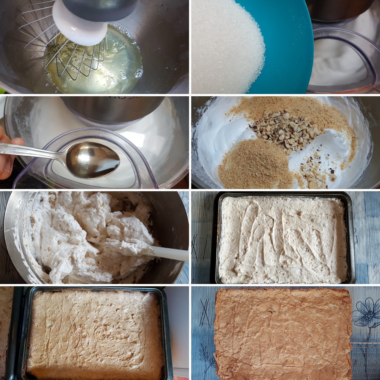 - Ulupajte 5 belanaca u čvrst šam. Postepeno dodajte 10 kašika šećera sve vreme muteći.