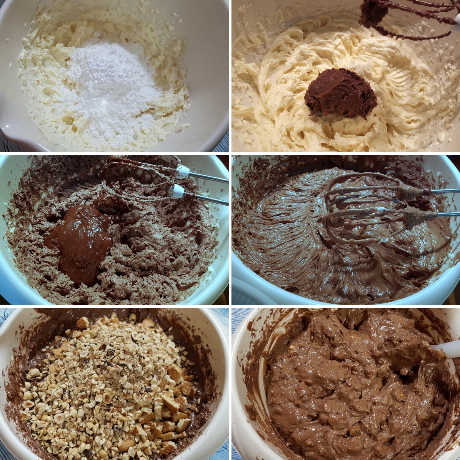 NAPOMENA: Keks i lešnike možete da zdrobite tako što ćete ih (odvojeno) staviti u najlon kese, pa preko njih izlupati drvenim čekićem ( za meso), a ako vam je lakše možete lešnike iseckati seckom, a keks izlomiti rukom.