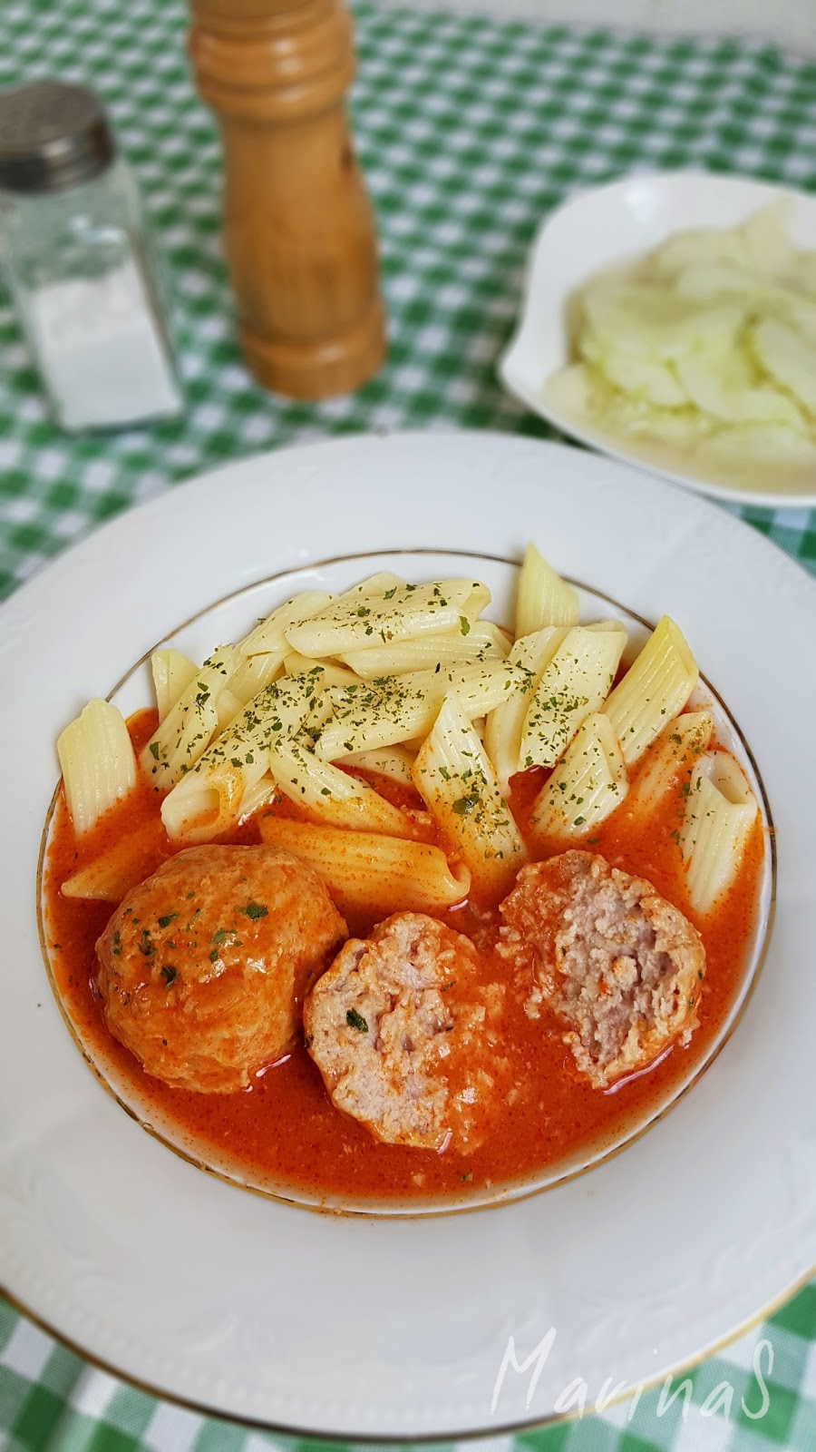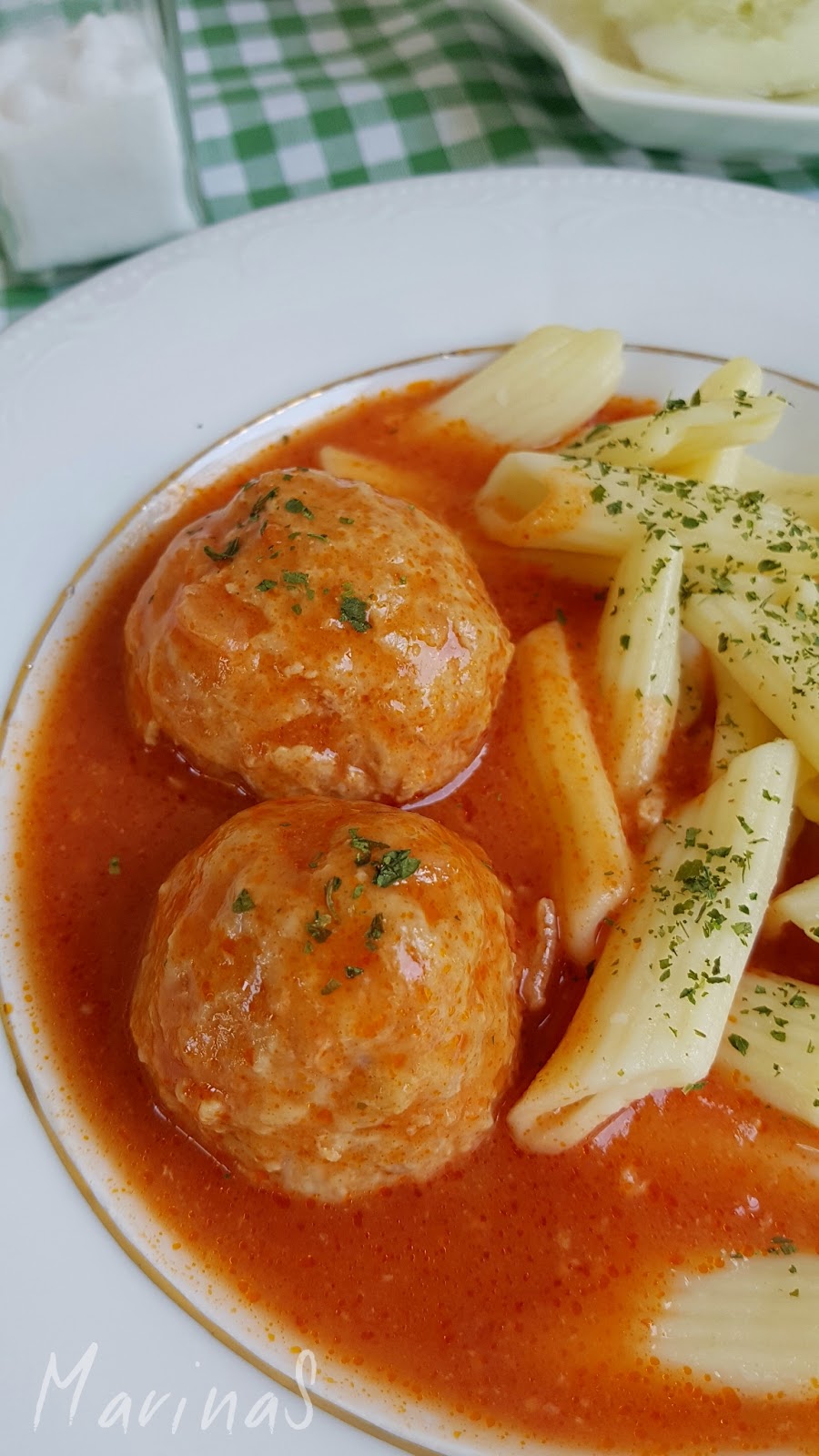 6. Služite gotove ćufte u sosu uz makarone, pire krompir il drugi prilog po ukusu.