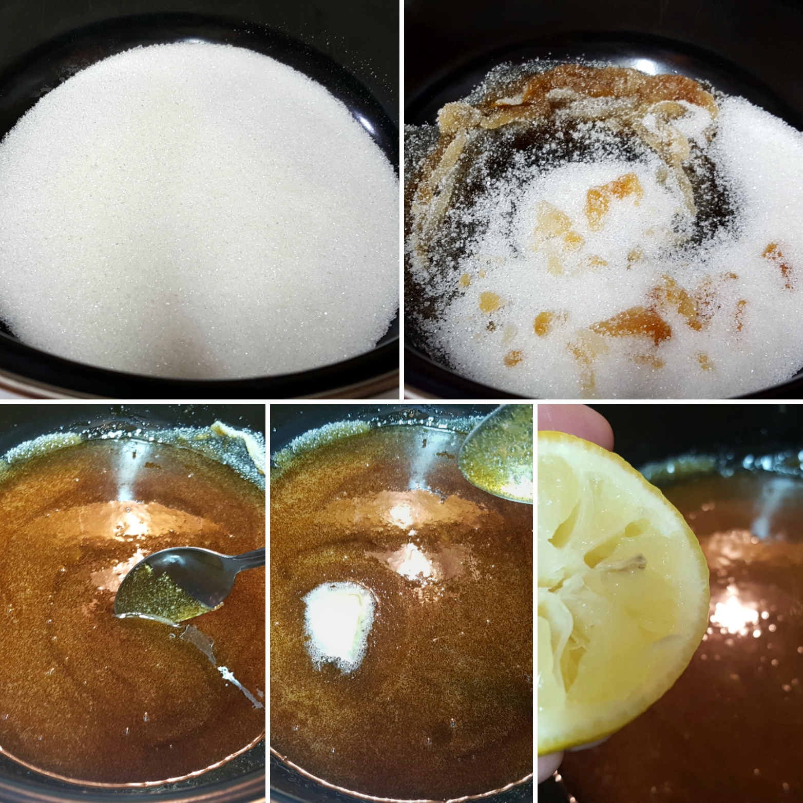 NAPOMENA: Puter se dodaje kako se glazura ne bi previše brzo stezala, pa da imate dovoljno vremena da lepo isecete parčiće. - Ako želite da posvetlite karamel na kraju sipajte i sok od limuna.