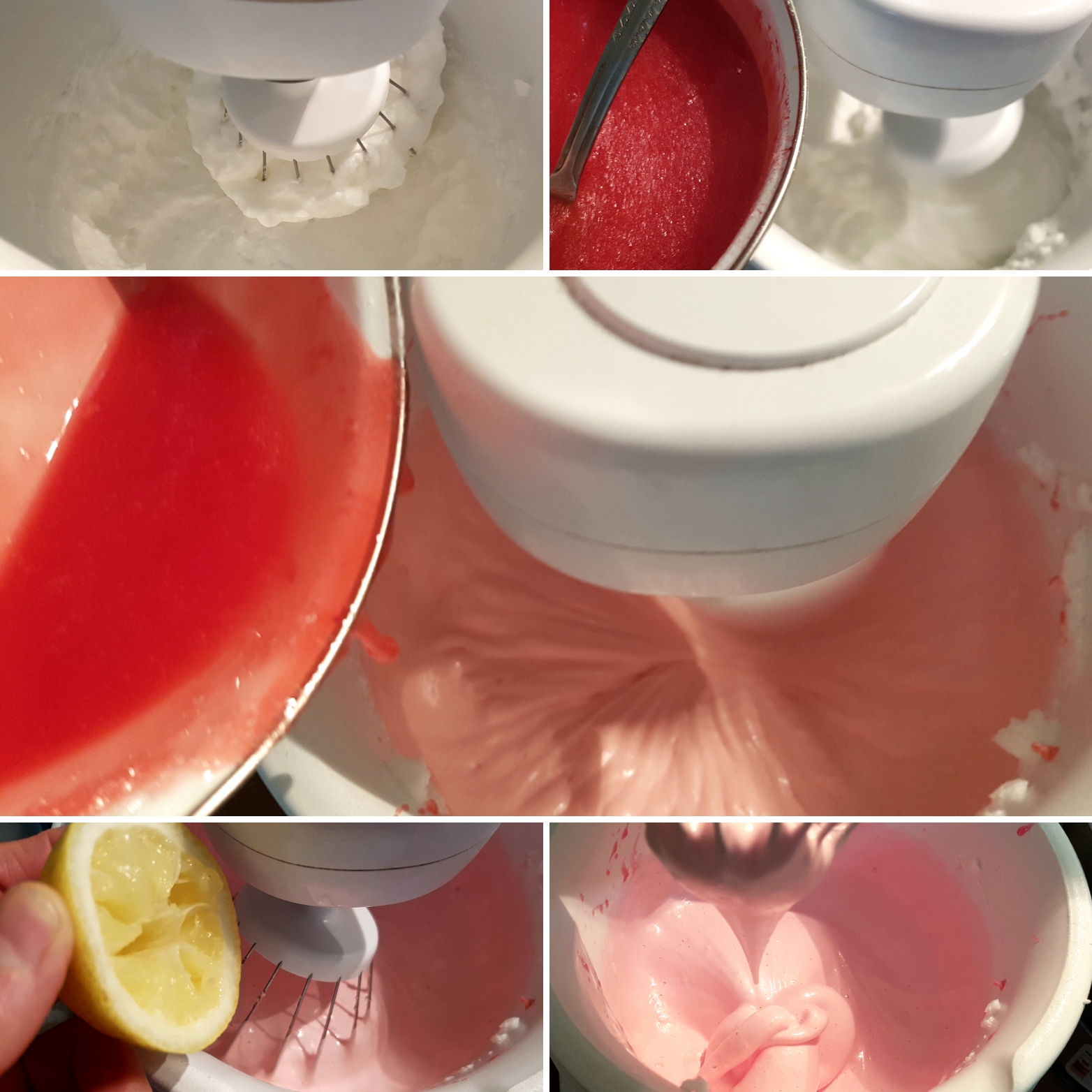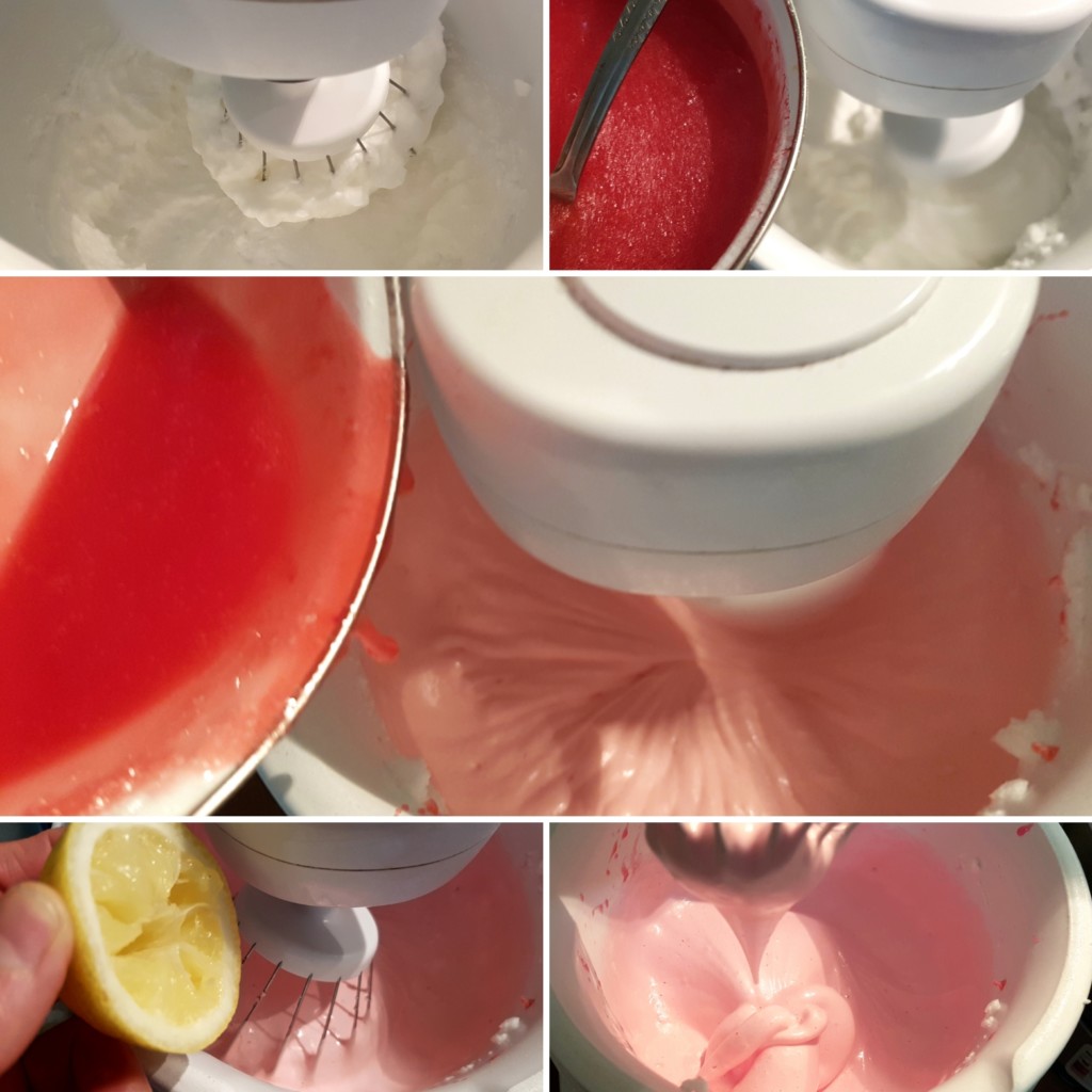 3. U međuvremenu ulupajte belanca u šam sa solju, te polako u mlazu sipajte vreo sirup i miksajte srednjom brzinom. Na kraju dodajte par kapi limunovog soka.