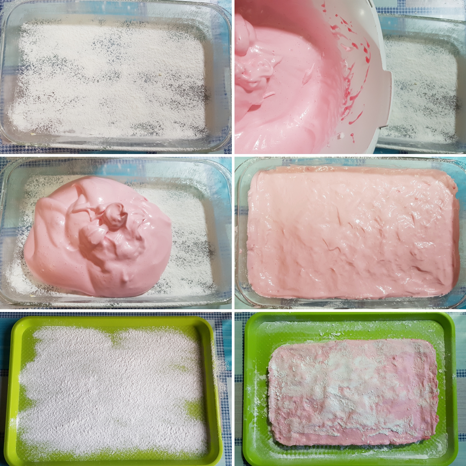 NAPOMENA: Skrob je potreban da isuši površinu bonbona al nije baš nešto ukusan, pa ga ne morate stavljati ako ćete marshmallows pojesti u roku od dan-dva.