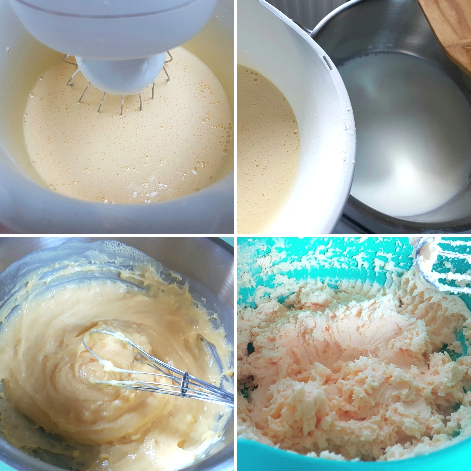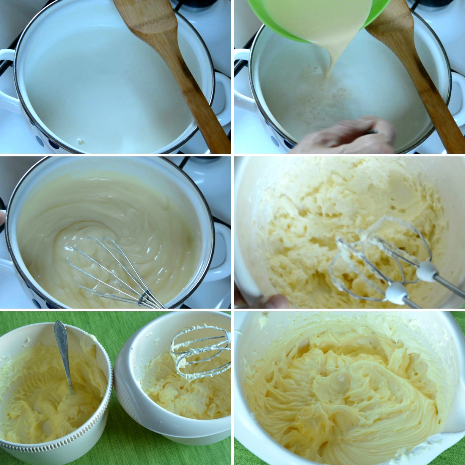 - Žumanca il jaja se umutite sa šećerom, dodajte im brašno ili skrob, te sipajte u preostalo proključalo mleko i mešajte neprekidno. Kad se masa zgusne i ponovo proključa sklonite sud sa vatre i ostavite da se hladi.