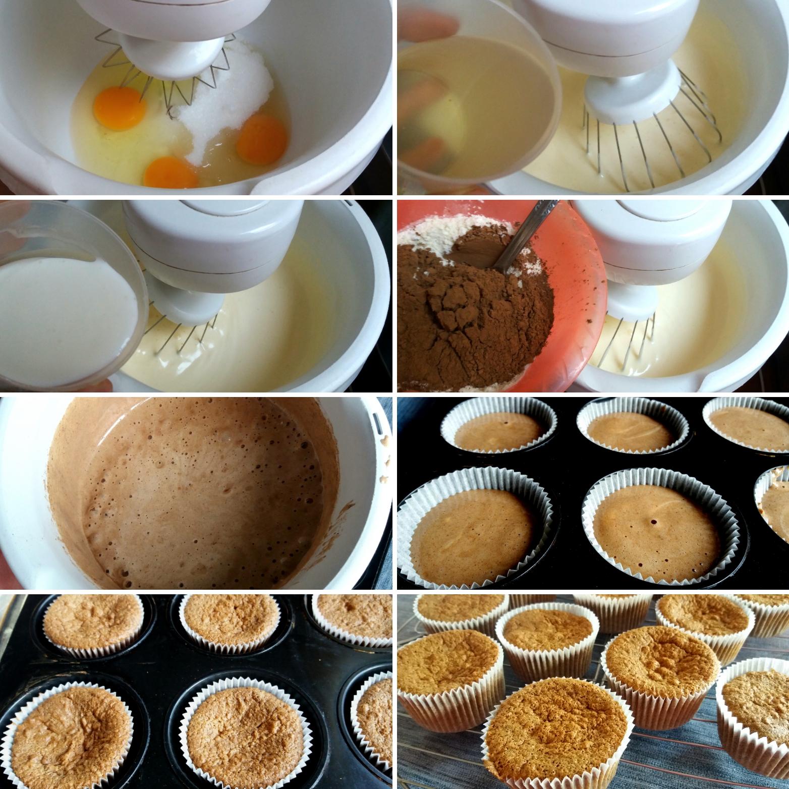 4. Dobijenom smesom punite papirnim korpicama postavljene kalupe za mafine, al ne do vrha .