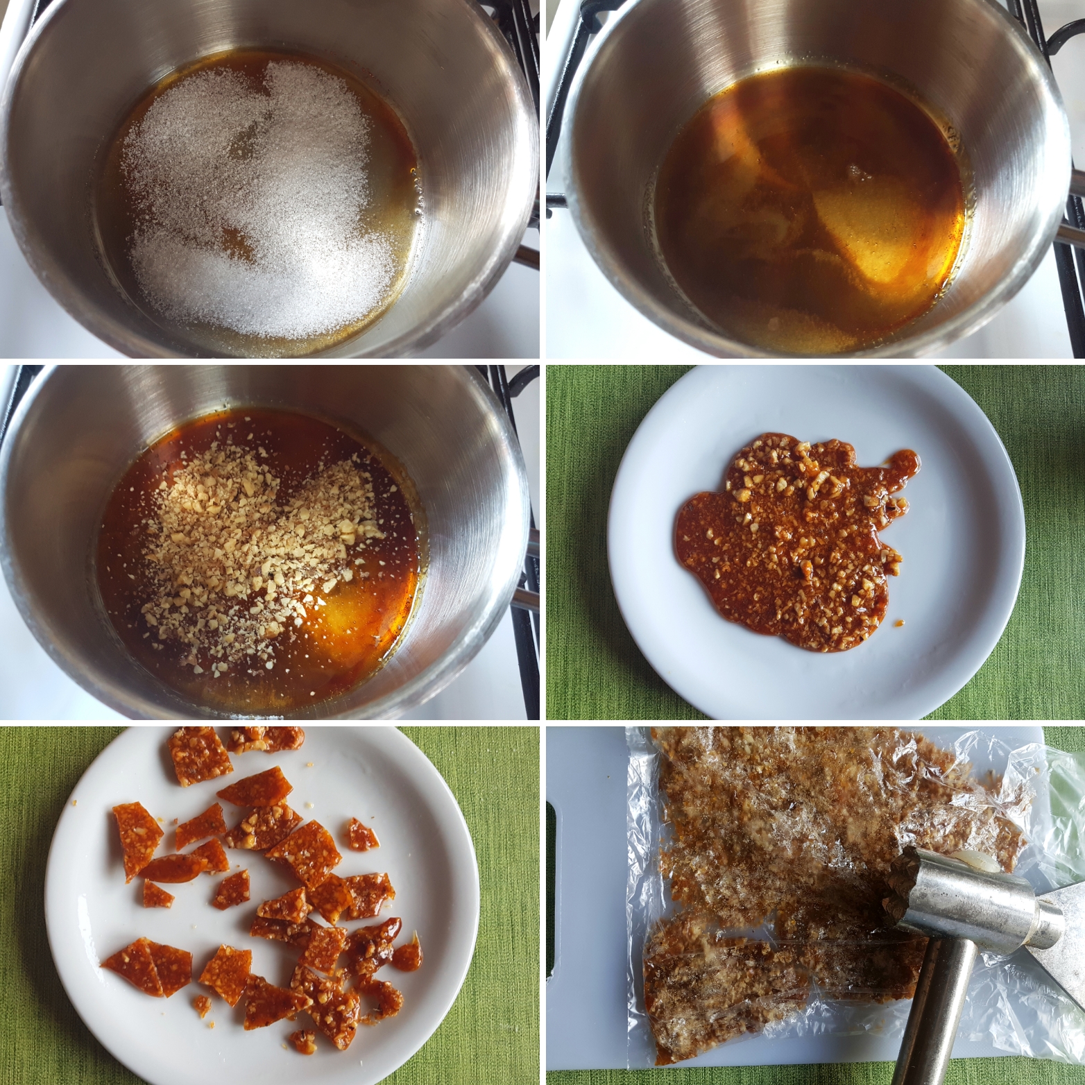 - Orahe il kikiriki usitnite prethodno, dodajte karamelu, promešajte, pa sklonite s vatre.