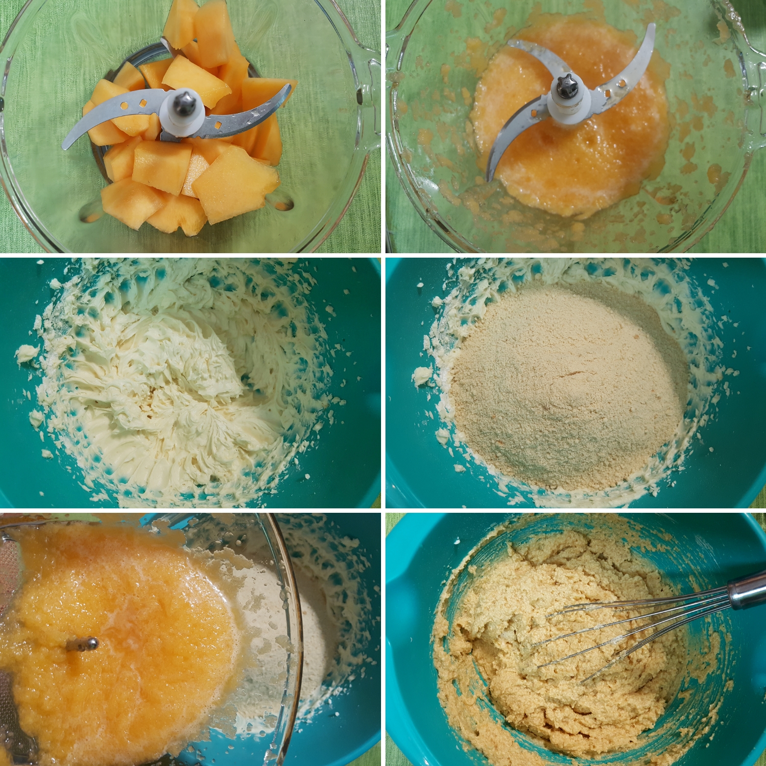 - Dodajte mleveni keks i kašu od dinje, te sve promešajte žicom za mućenje.