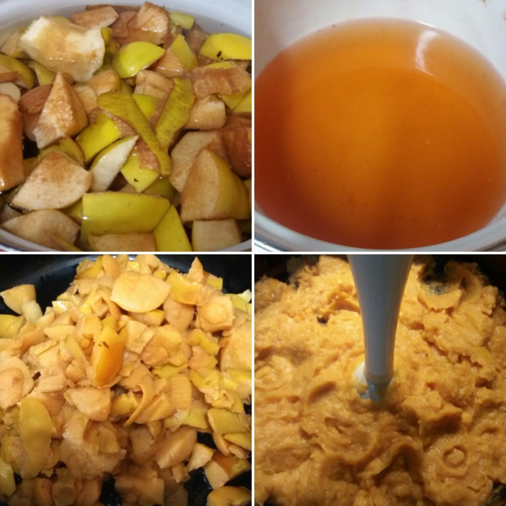- Pošto su mi to bili jedini putokazi, napravivši mrvičastu pitu od dunja rešila sam da iskoristim preostale ljuske dodavši im još komadića celih dunja (dunjce sam pojela ☺). Skuvala sam sve to u malo vode, ali bez dodavanje limunovog soka jer nisam želela da ih posvetli, a i činilo mi se logičnim da je on višak u staroj recepturi jer pre sto i više godina limun nije bio baš dostupan na ovim prostorima. Ocedila sam skuvane delove voća ,a sok sačuvala,pa smo kasnije uz dodatak šećera imali odličan napitak.