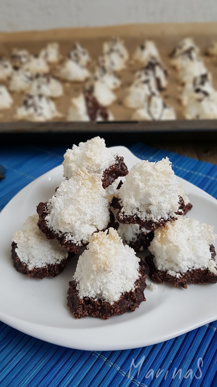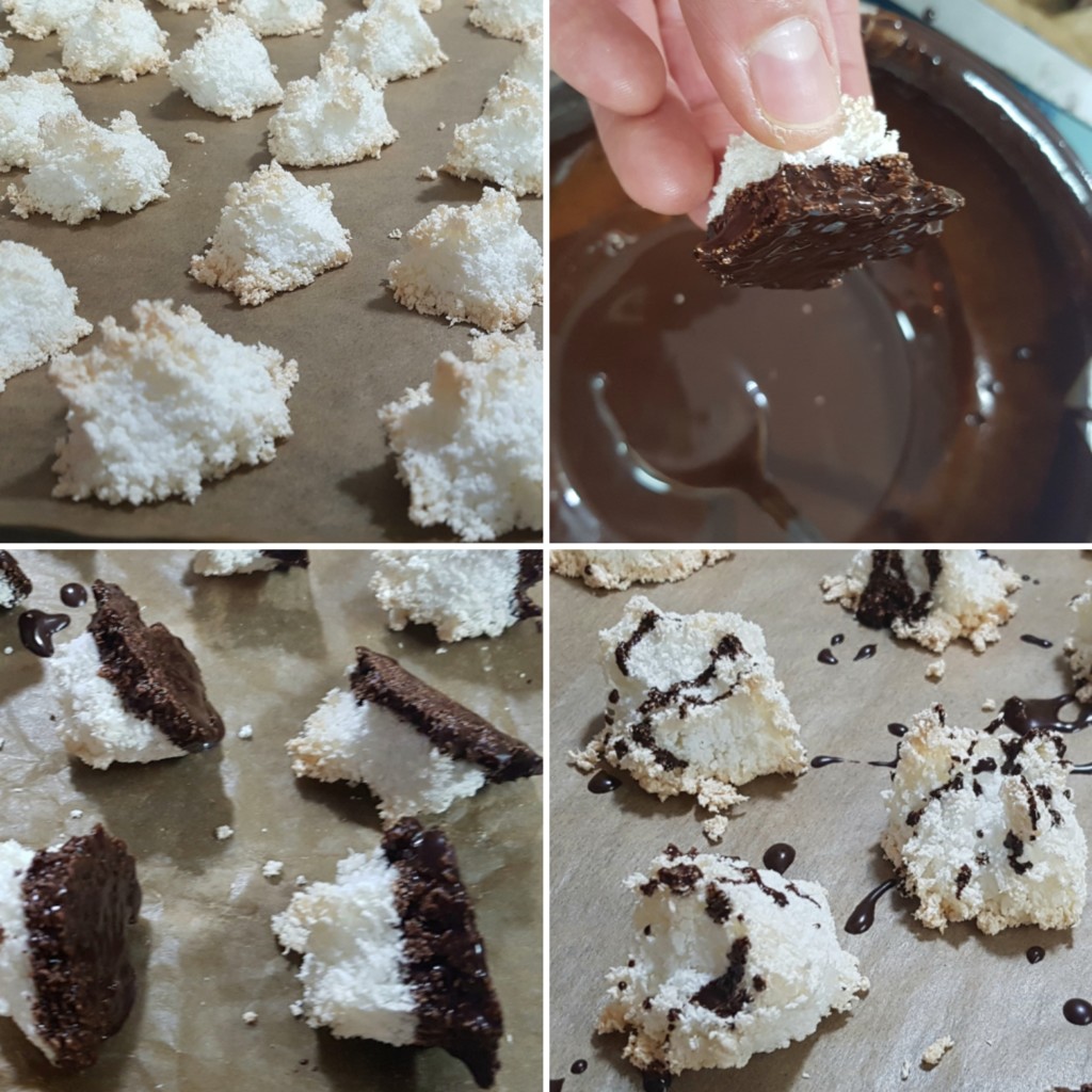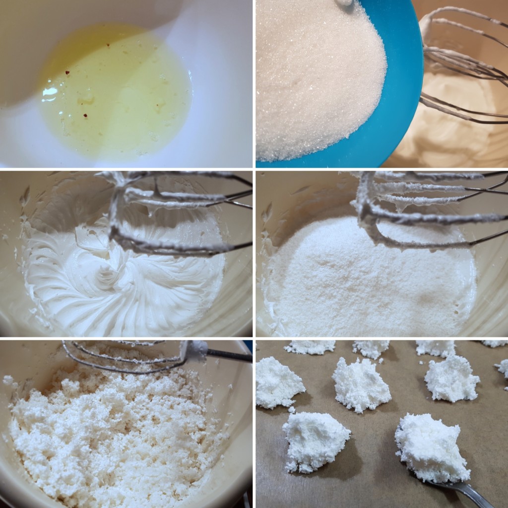 Kokos makroni (a ne kokos macaronsi ) su tradicionalni nemački kolačići od belanaca i spremaju se uglavnom za zimske blagdane. Negde se pominje da su nastali još u 9.veku nakon arapskih osvajanja i pod uticjaem bliskoistočnjačke kuhinje. Recepata naravno ima prilično, a ja sam se opredelila za po mom mišljenju najednostavniji, bez kuvanja na pari i dodavanja vode.