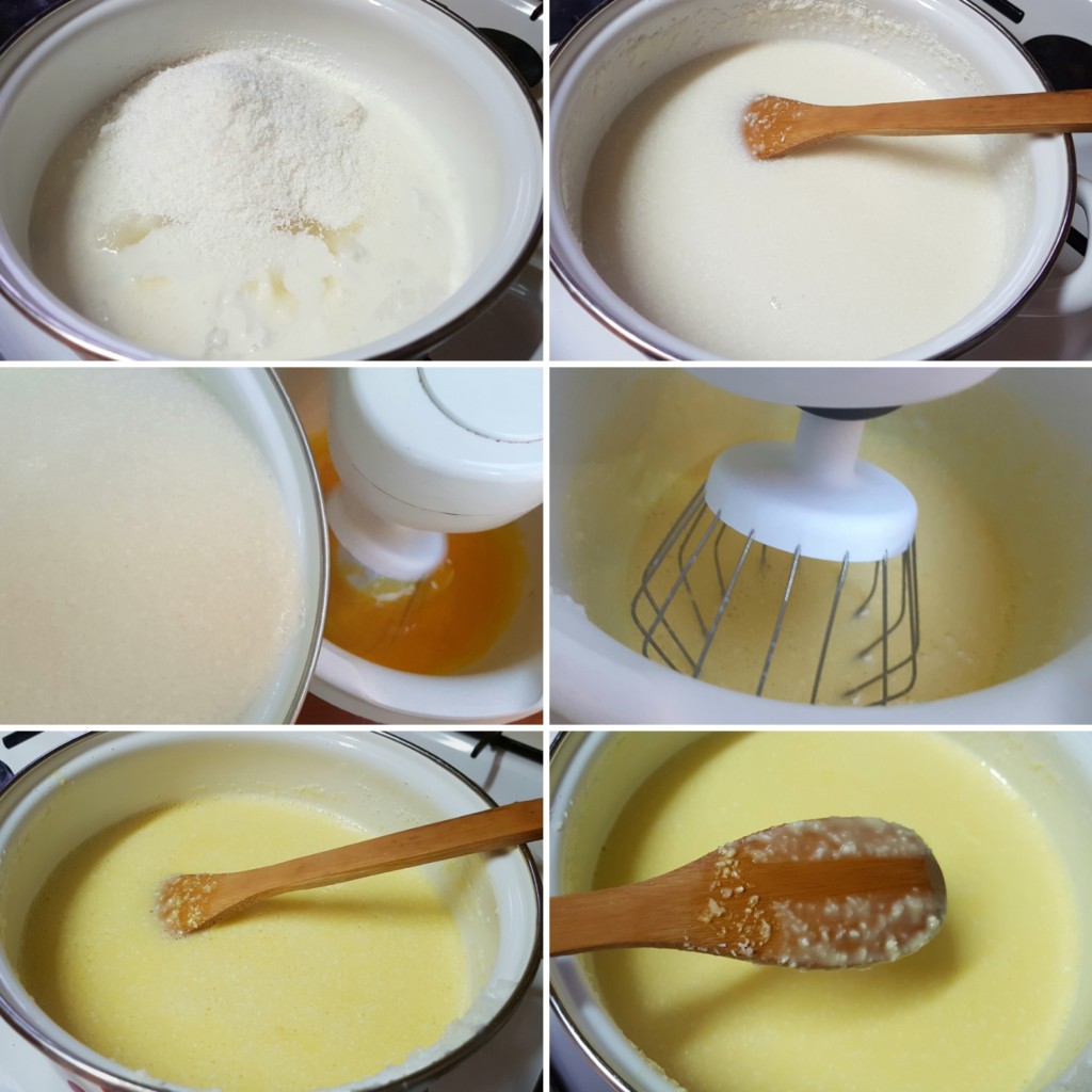 2. U posudu miksera stavite četiri žumanca, blago ih razmutite, a potom lagano sipajte u njih prohlađenu tečnost. Miksajte sve vreme da se lepo sjedine.