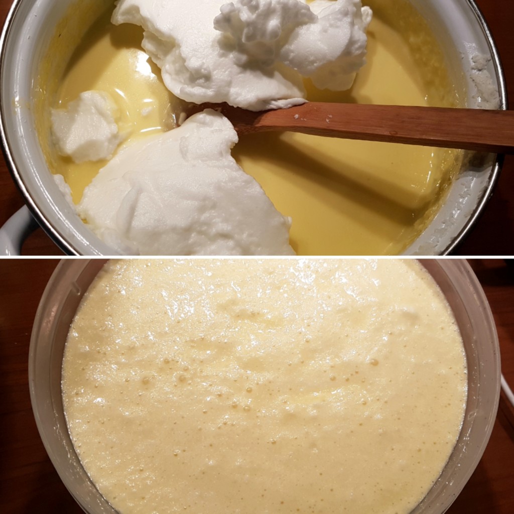 4. Kad se masa ohladi lagano umešajte šam od dva belanceta, a zatim rasporedite u odgovarajući plastični sud sa poklopcem i zamrznite.
