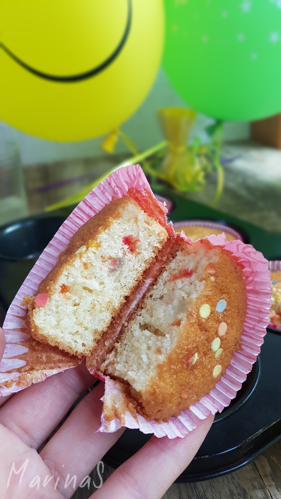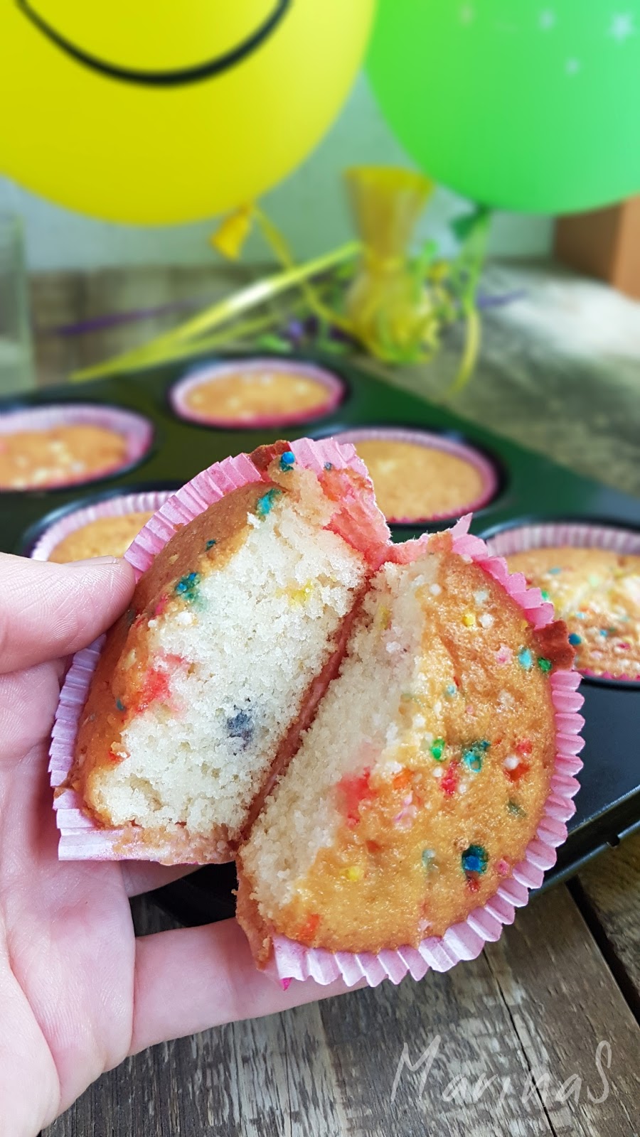 Već dugo tragam za savršenim vanila mafinima i čini mi se da se ovim receptom ta potraga okončava. Osim toga, a pre svega, ovo su veoma dekorativni i deci jako interesantni kolačići jer u svom sastavu imaju raznobojne jestive mrvice i/ili konfetice.