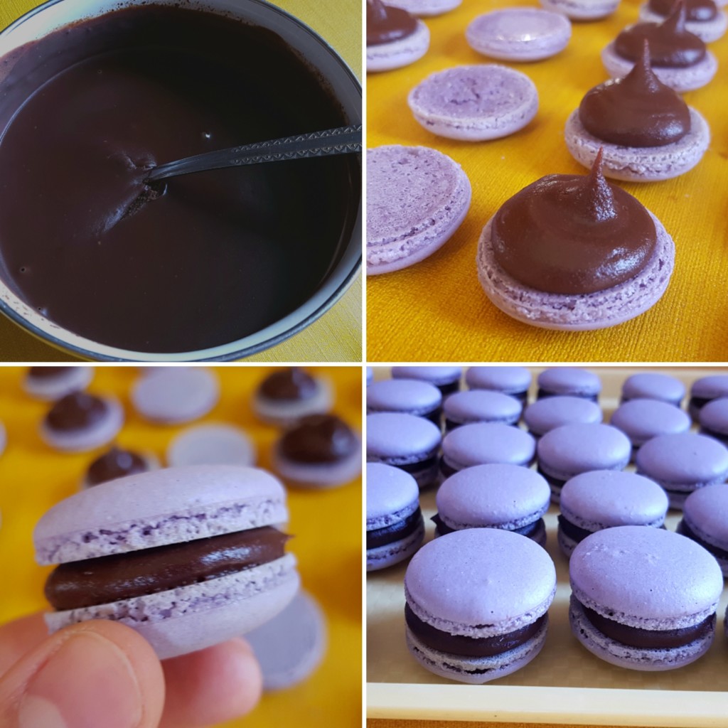 13. Ohlađenim filom napunite poslastičarsku vreću sa nastavkom po želji ( koristila sam okrugli ovog puta), istiskujte kupicu fila na jedan macarons i poklopite je drugim, te malo pritisnite da se fil ravnomerno rasporedi.