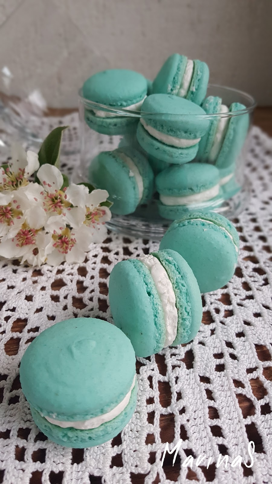 Svojim prvim macaronsima po ovom receptu nisam u potpunosti zadovoljna, al ovako buckasti i nesavršeni baš liče na Lorrainine, a pošto je ona svojim bila oduševljena, osmelih se i ja da objavim svoju izvedbu. Ne zamerite..