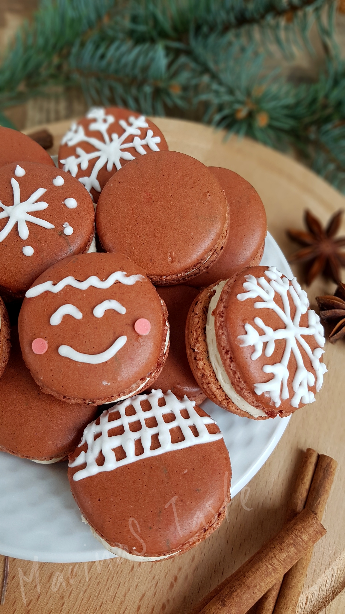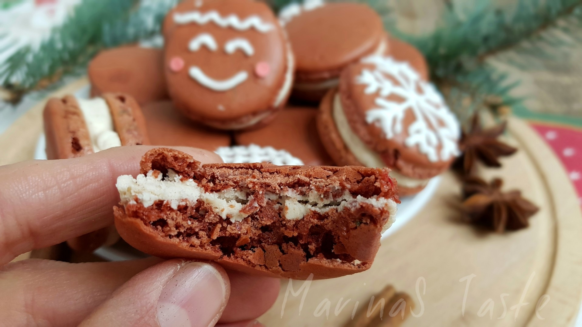 Medenjake za novogodišnje praznike ne napravih, al evo ovi macaronsi ih skoro savršeno imitiraju kako izgledom tako i ukusom. Biću naravno pristrasna u tvrdnji da su čak i ukusniji od pravih medenih keksića jer su tako sočni, hrskave spoljašnjosti, a meki iznutra, ma prosto božanstveni. Ako mi ne verujte, proverite sami sledeći uputstvo koje sledi.