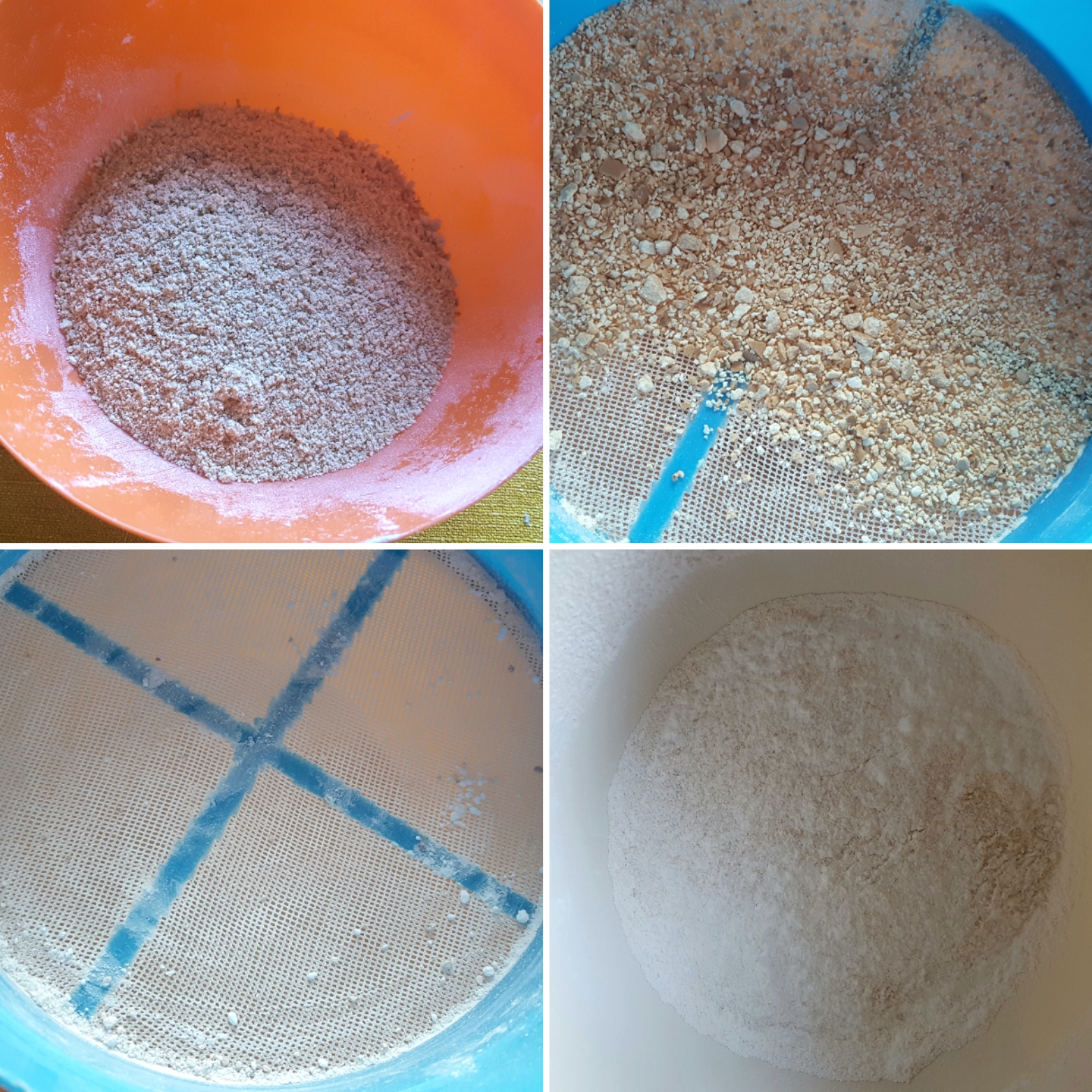 - Prosejte, a ako zaostanu krupnije čestice pomešajte ih sa ostatkom prah šećera i ponovite postupak mlevenja i prosejavanja.