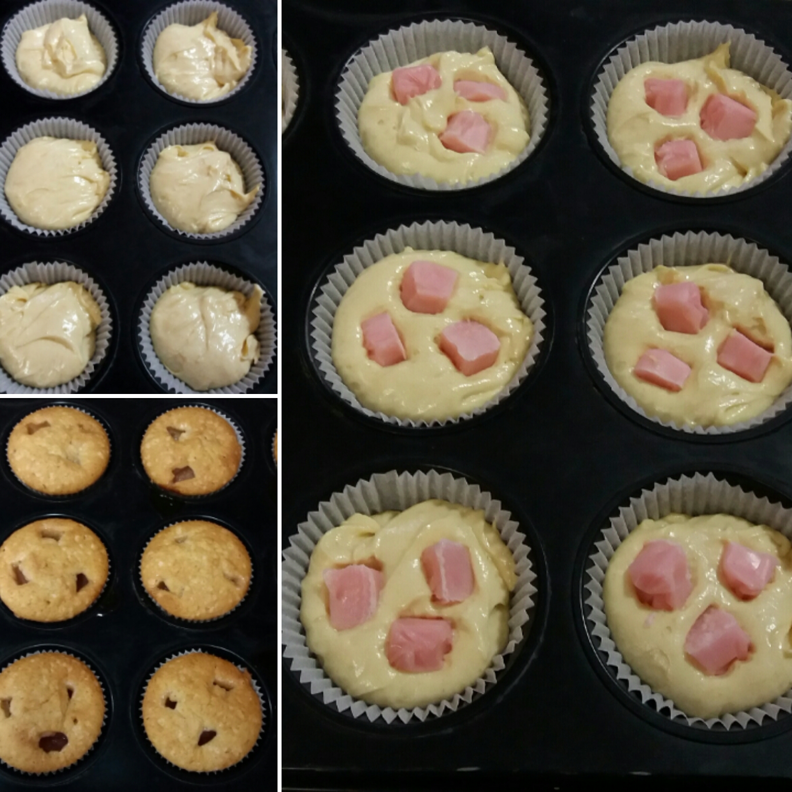 2. Dobijenu smesu kutlačom sipajte u papirnim korpicama postavljene otvore kalupa za mafine (od ove količine izađe oko 18 komada).