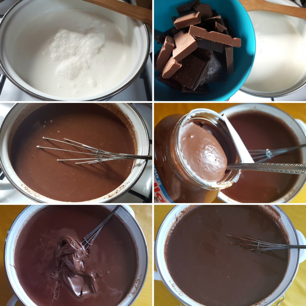 - Zagrejte slatku pavlaku pazeći da ne proključa. Sklonite sa vatre, dodajte kockice čokolade i sačekajte par minuta. Promešajte da se rastope, pa dodajte Nutelu il drugi nugat krem po želji.