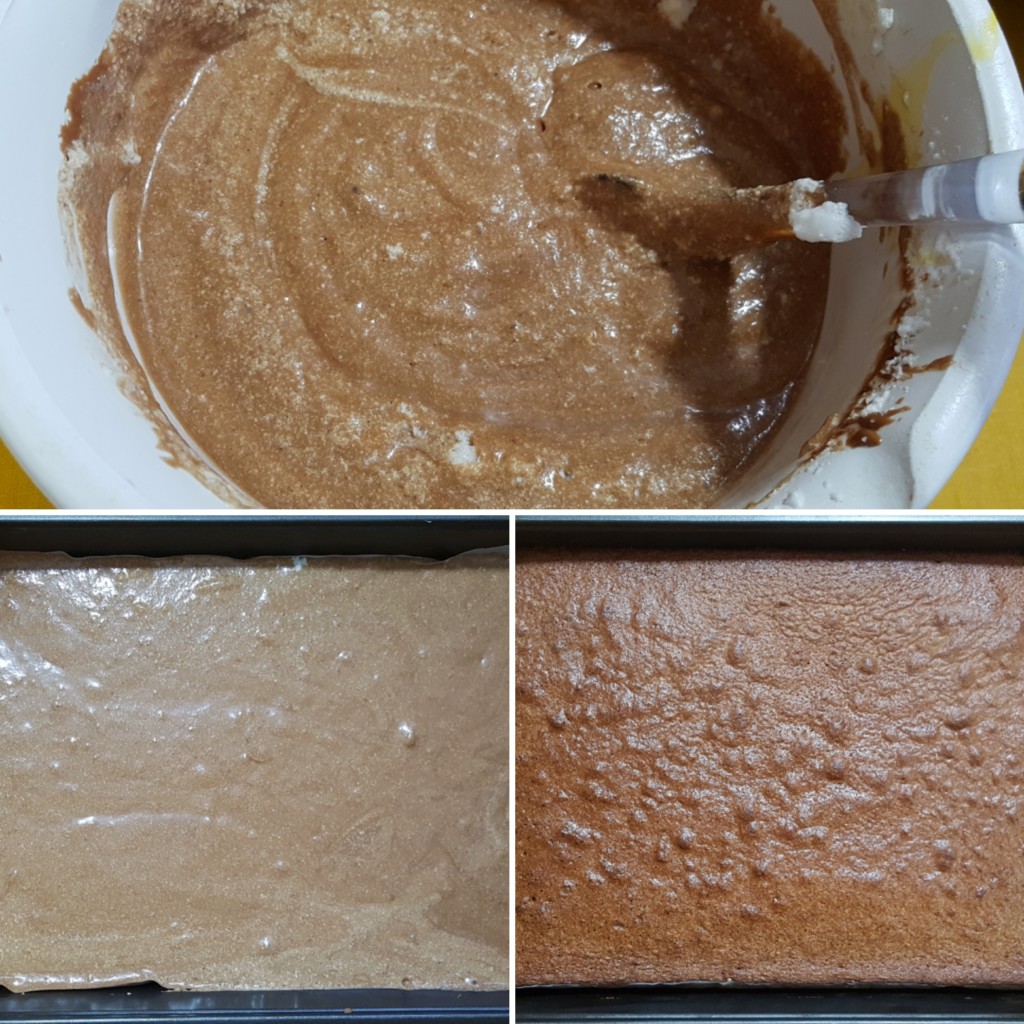 - Dva pravougaona pleha postavite papirom za pečenje ( moji su 22×32 cm), pa rasporedite po polovinu mase u svaki, poravnajte i pecite odjednom ako imate rernu sa ventilatorom , a ako ne jednu za drugom na 180 ° C oko 15-20 min.