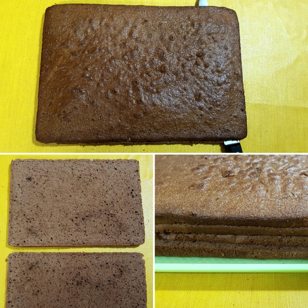 5. Ohlađene pečene biskvite prerežite horizontalno na dva jednaka dela.