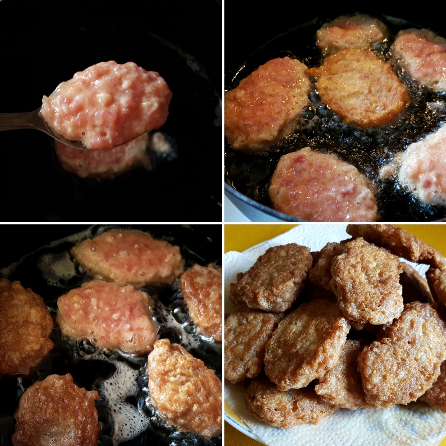 3. Zagrejete ulje/mast, a potom kašikom zaronjenom prvo u vrelu masnoću uzimajte po malo mase i spuštajte u mast. Nakon nekoliko minuta ih okrenite na drugu stranu i dovršite prženje.