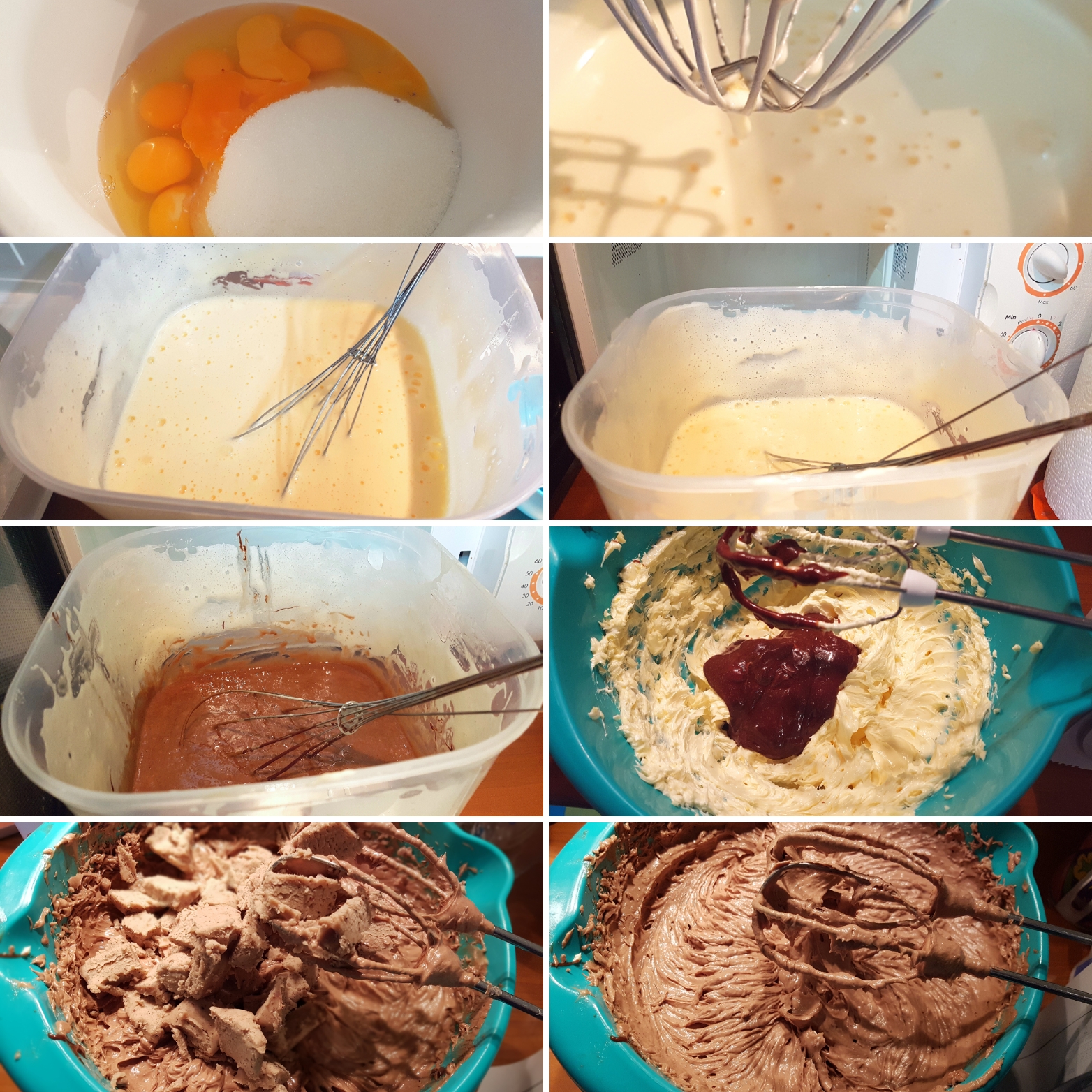 1. Umutite jaja sa šećerom i skuvajte ih na pari ili u mikrotalasnoj (po ovom uputstvu). Pred kraj dodajte čokoladu i aromu ruma po ukusu i ostavite da se ohladi.