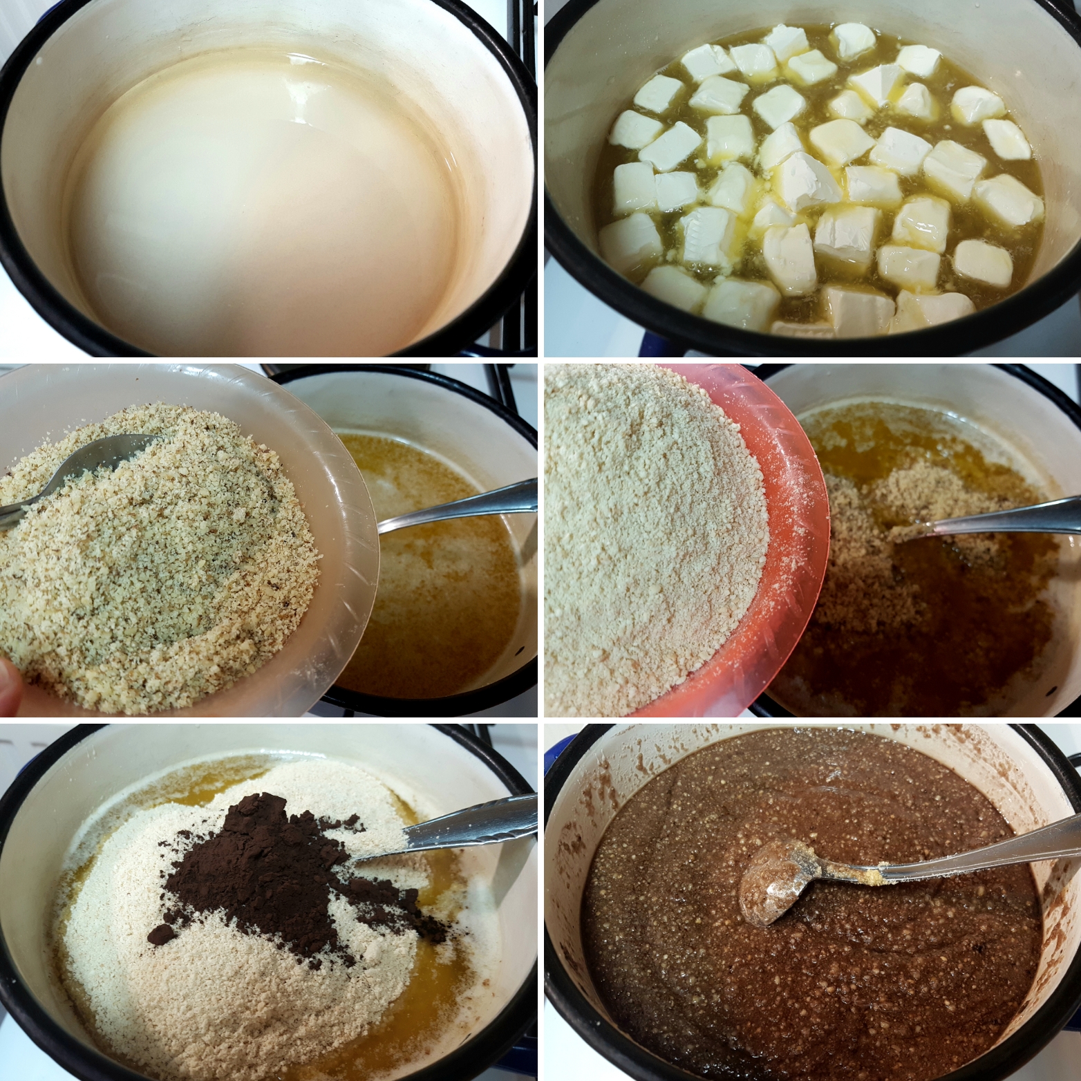 - Umešajte mlevene orahe, mleveni keks i kakao, pa ostavite da se fil prohladi.