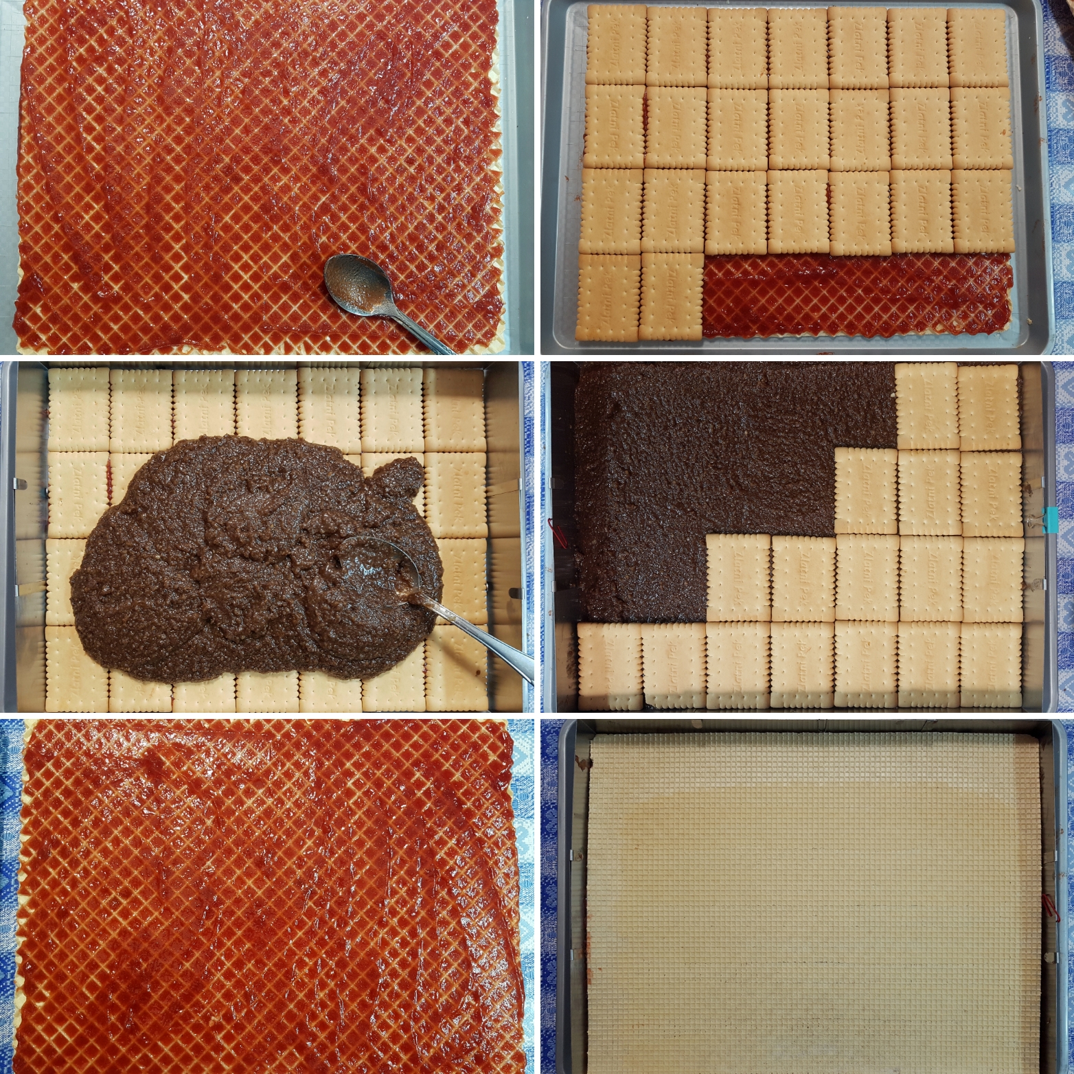 - Drugu oblandu takođe premažite pekmezom, pa je spustite na keks namazanom stranom ka dole.
