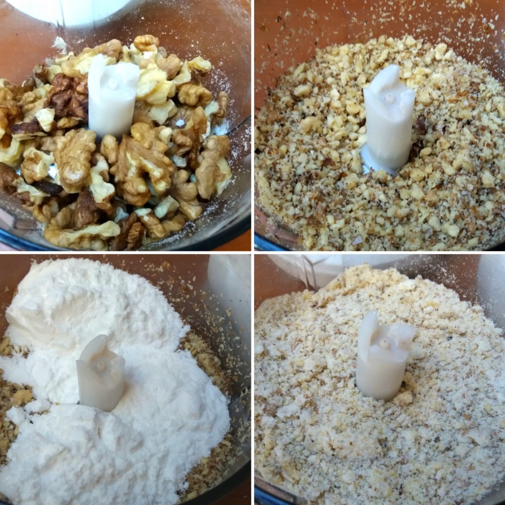 2. Orahe iseckajte sitno u secku uz dodatak par kašika šećera u prahu koji će sprečiti da se orasi samelju u pastu i puste ulja.