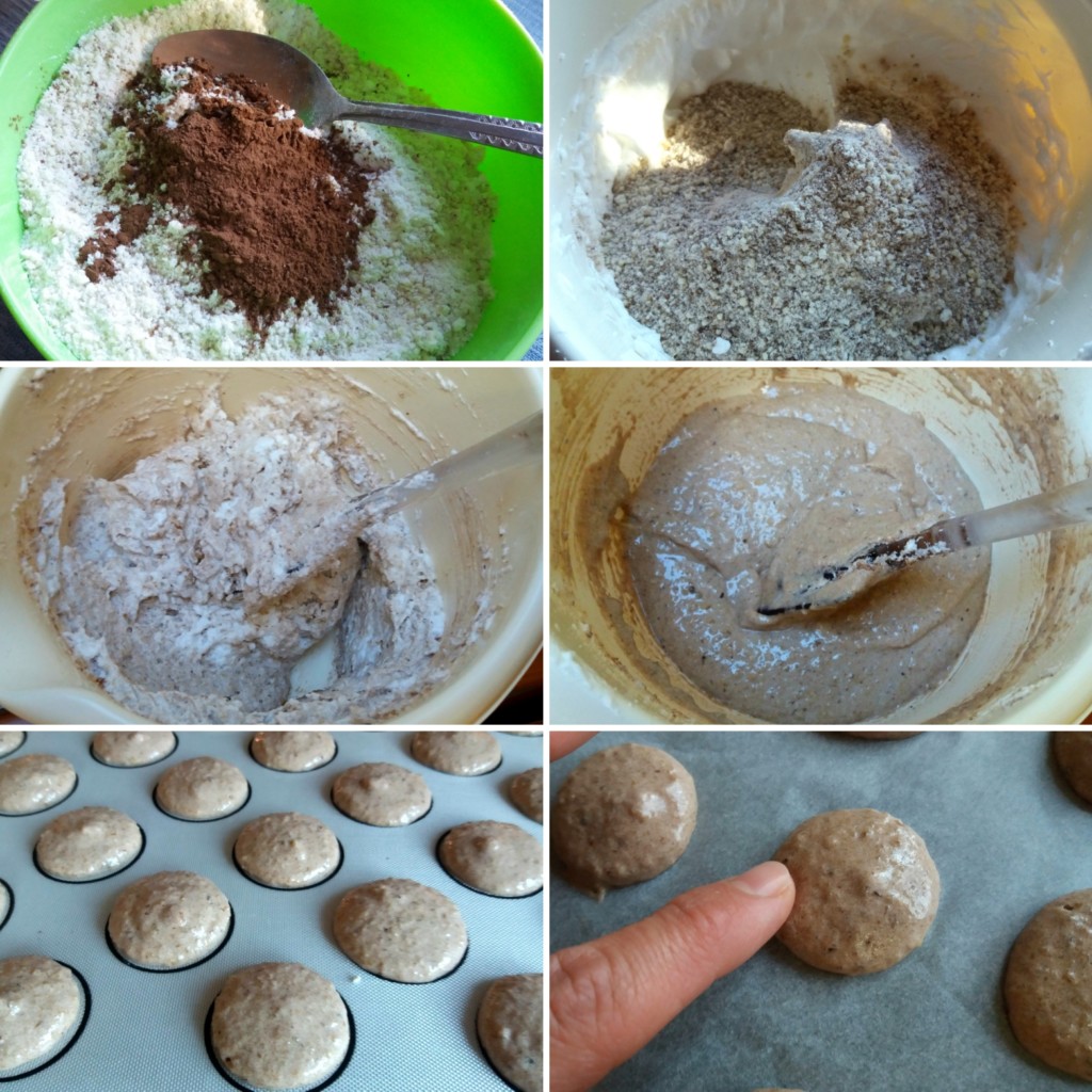 6. Pripremljenu smesu sipajte u vreću sa nastavkom okruglog otvora i istiskujte po malo na silikonsku podlogu ili običan papir za pečenje. Tresnite nekoliko puta plehom o sto i uznemirite ukućane, osim ako već nisu oguglali na takve nuzefekte vašeg bavljenja u kuhinji.