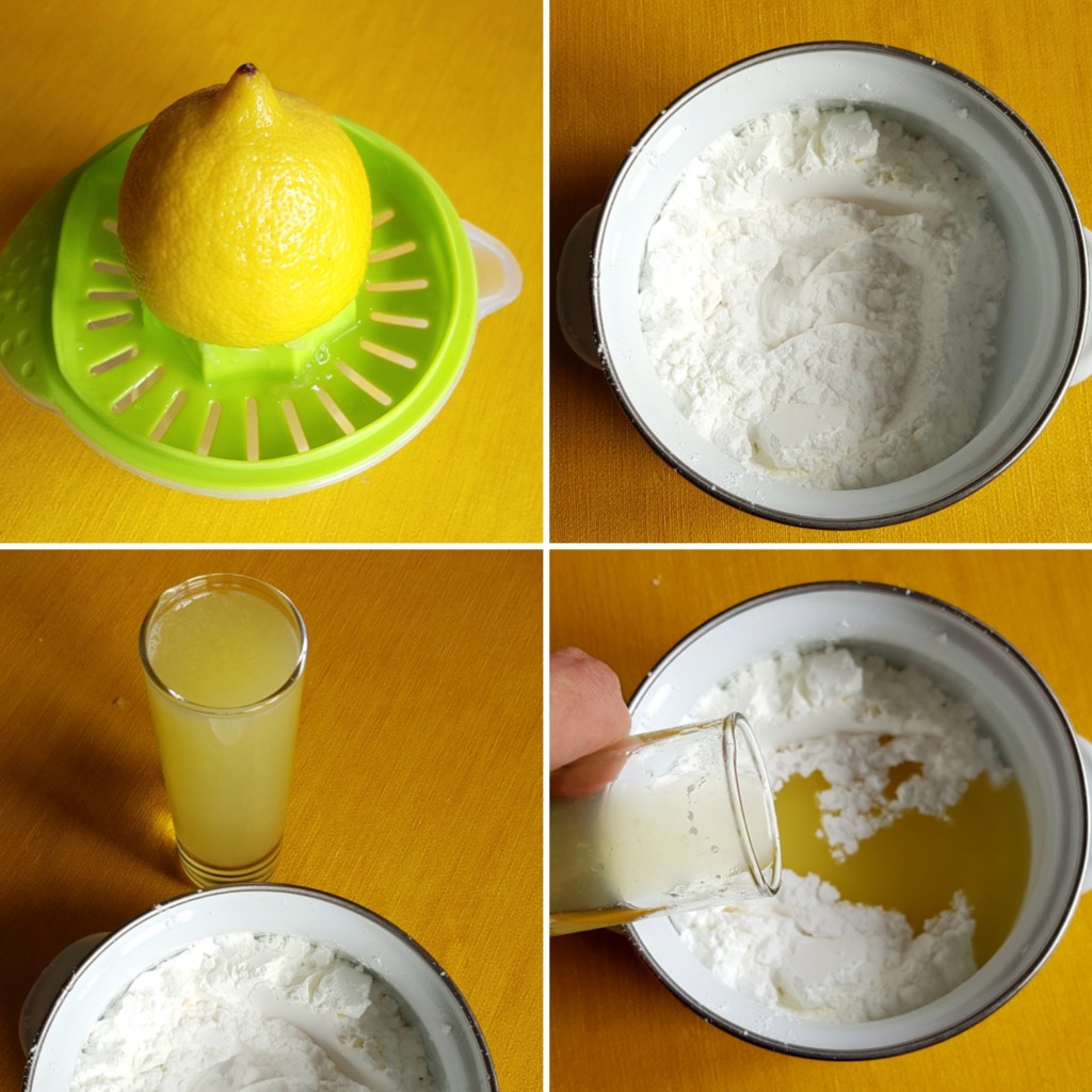 2. U odgovarajuću šerpicu stavite šećer u prahu, gustin , limunov sok i vodu.
