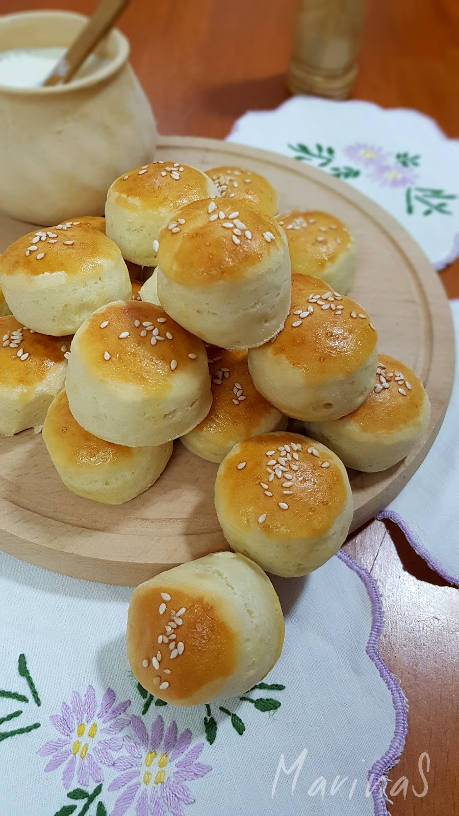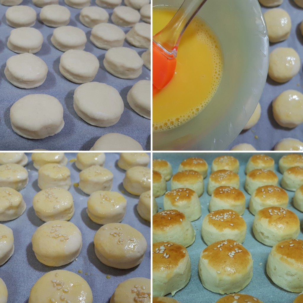 4. Nakon 20 minuta premažite svaku razmućenim jajetom, pospite susamom, a zatim pecite u rerni zagrejanoj na 180°C dok ne porumene ( oko 15-20 min.).