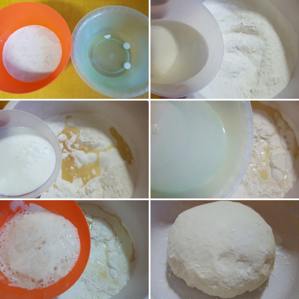 2. U posudu sipajte brašno, so, ulje, mleko, aktiviran kvasac i vitamin C, te umesite testo. Pokrijte ga čistom kuhinjskom krpom i ostavite da odmori 40 minuta.