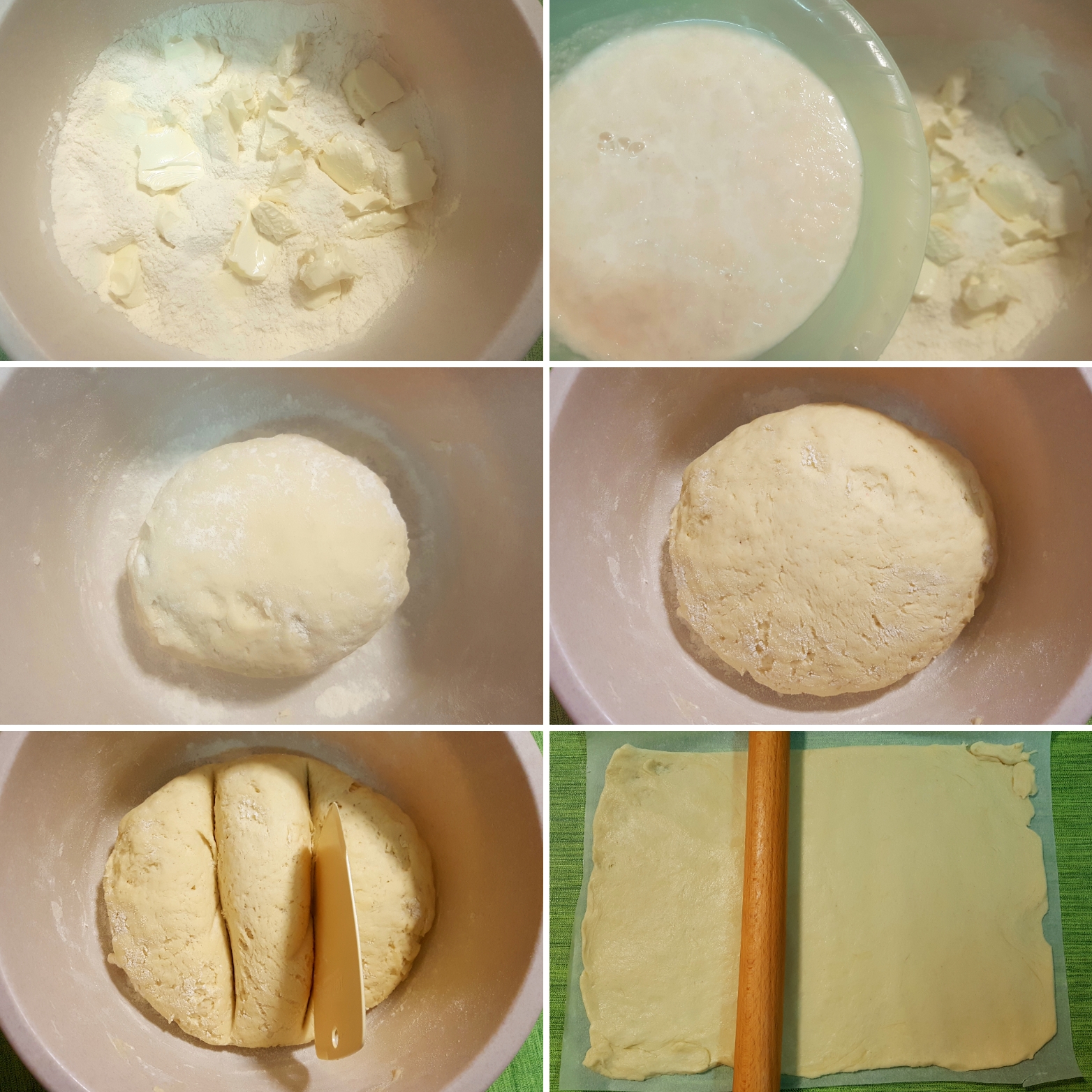 2. Pomešajte brašno sa sodom bikarbonom, dodajte omekšali margarin i nadošao kvasac, te umesite testo. Ostavite ga na toplom mestu da udvostruči zapreminu.