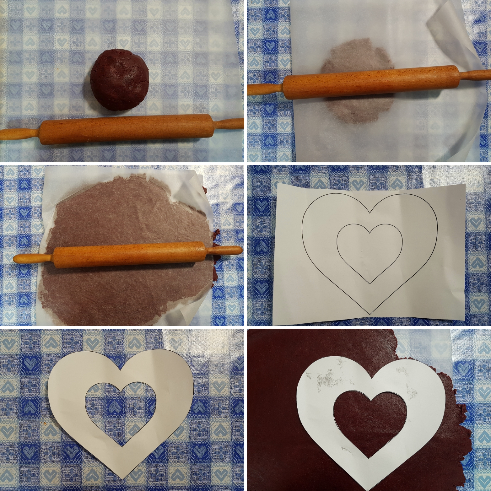 Napisah u receptu da sam od mase napravila 4 korice za srce na A4 formatu i još je ostalo za dosta keksića tako da ne morate da razvijete tanje od 3-4 mm.