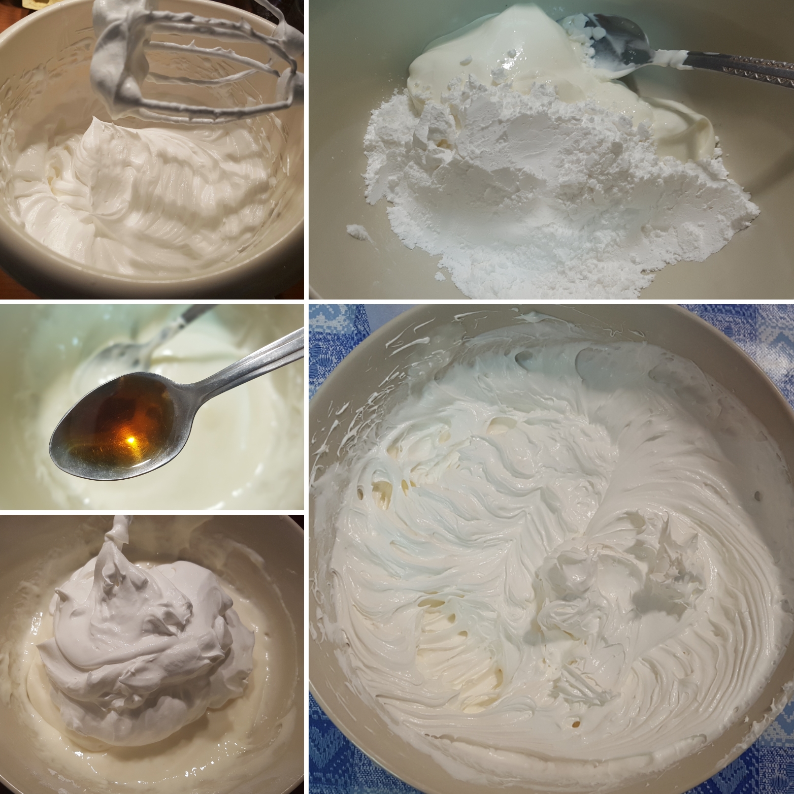 - Posebno pomešajte mascarpone ili vajkrem sa šećerom u prahu i aromom vanile.