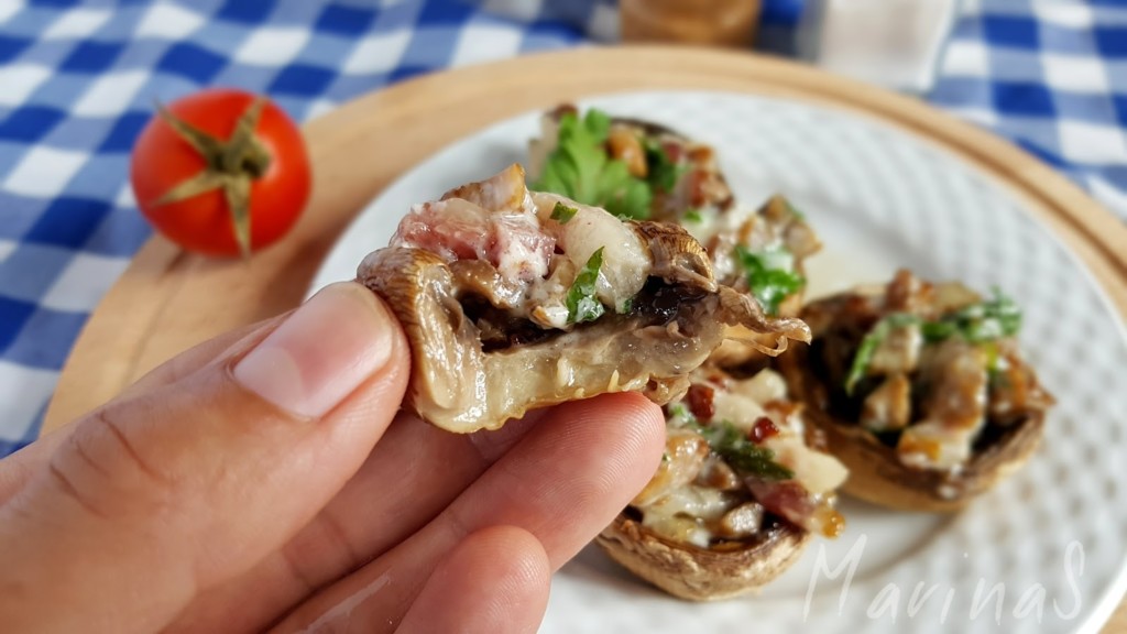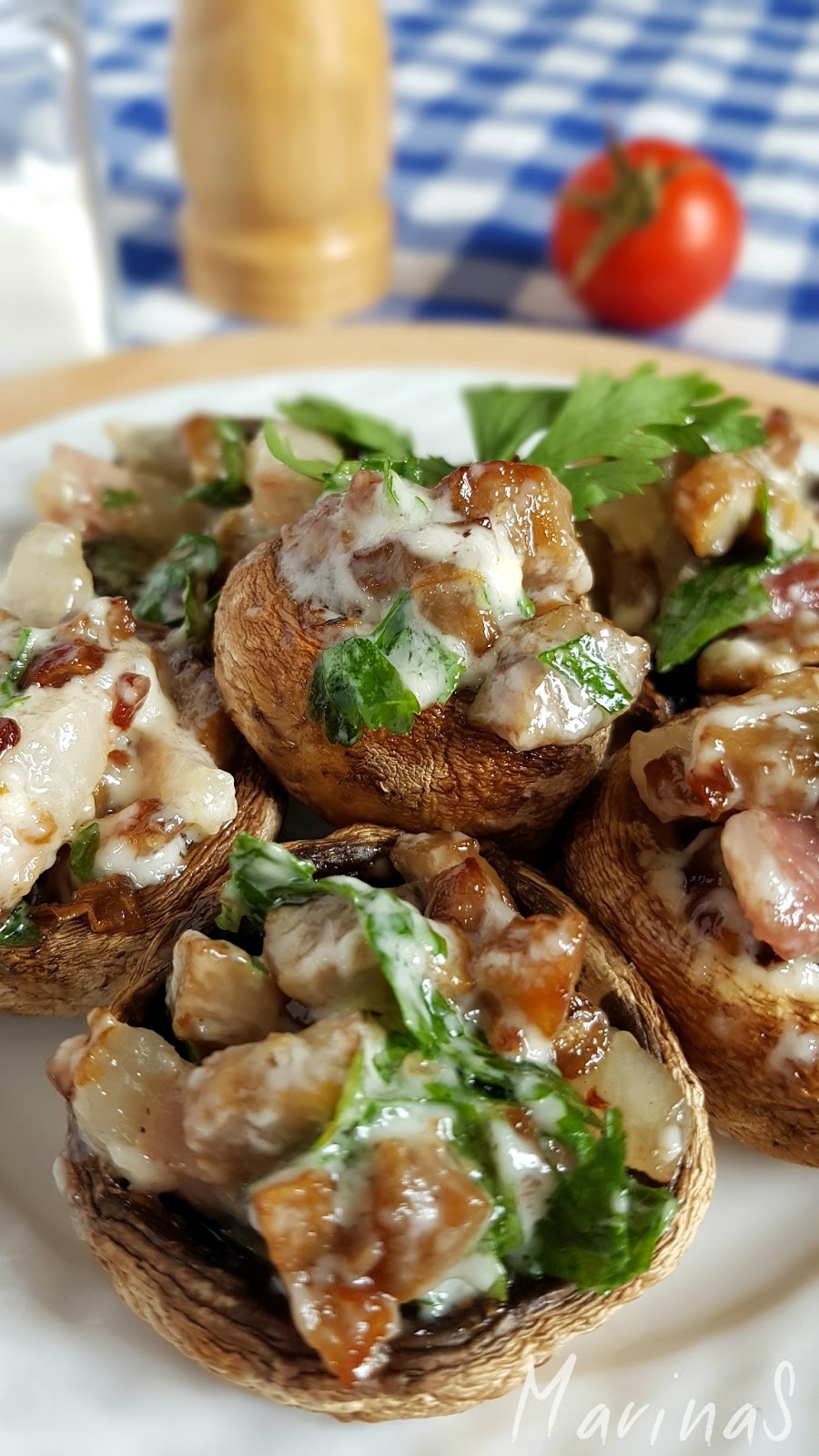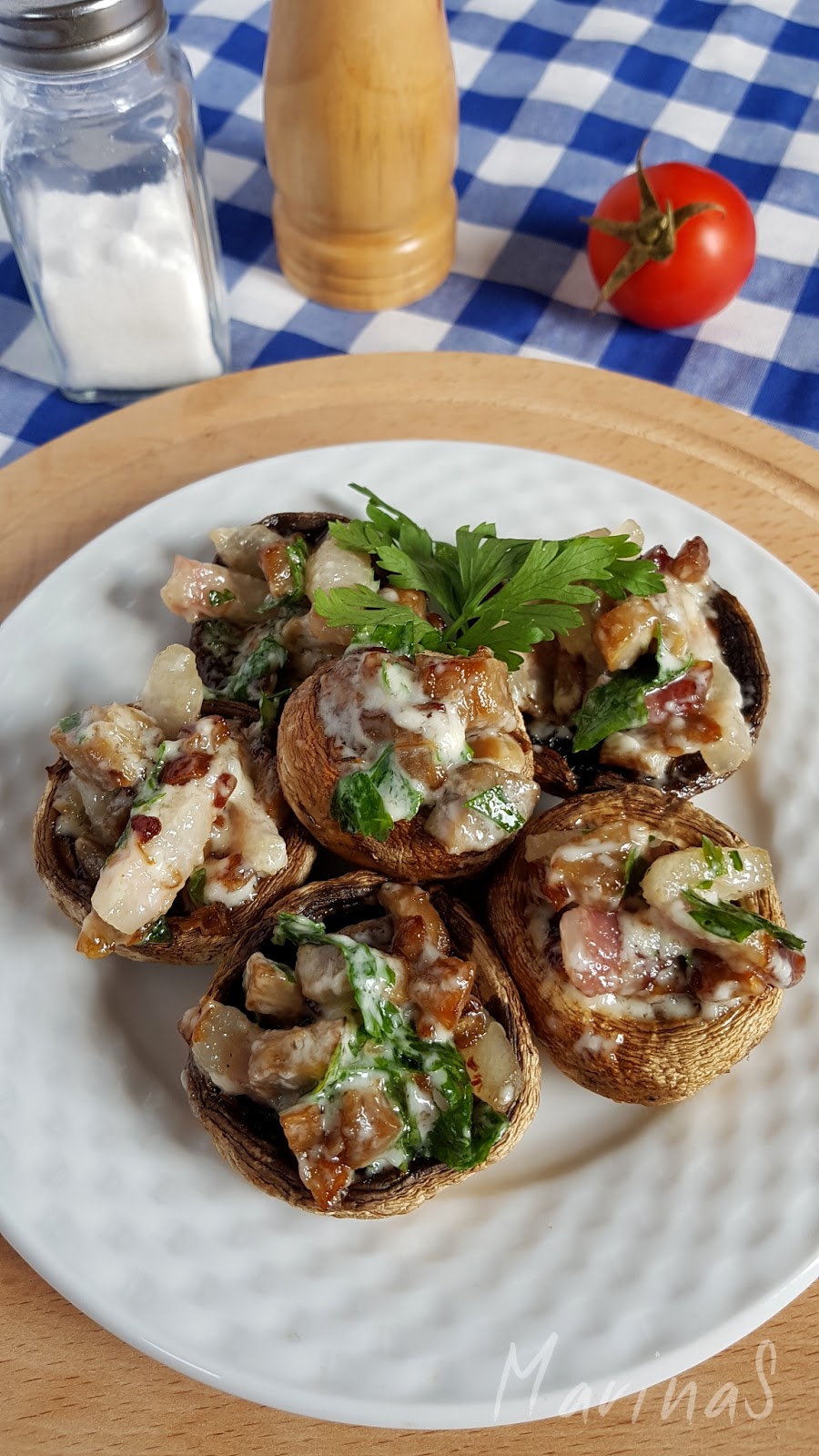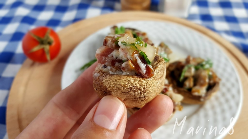 Kombinacija šampinjona i šunke mi se veoma dopada, al dok baš često pripremam šampinjone sa šunkom i belim lukom ( recept ovde) ove punjene pravim u posebnim prilikama jer to zaista zaslužuju.