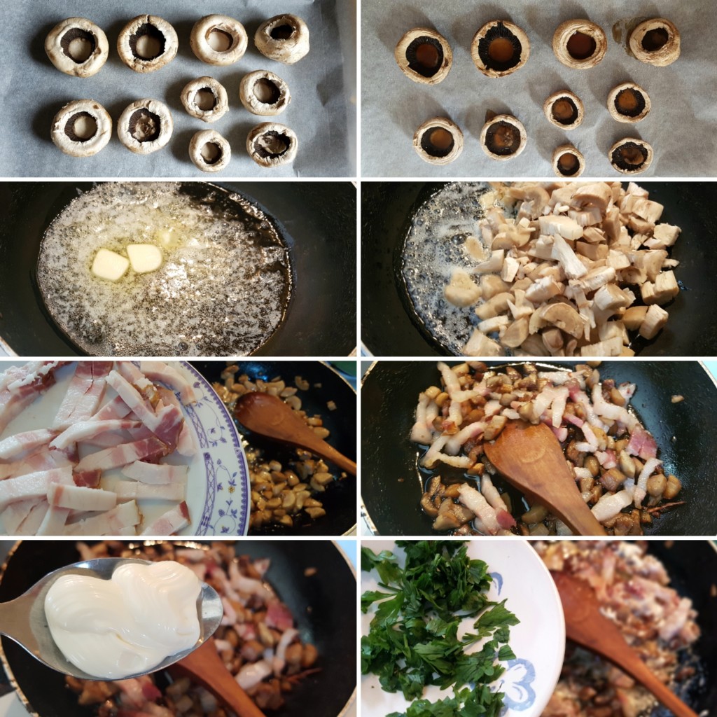 5. Pripremljenom smesom punite pečene kapice šampinjona i ređajte ih na tanjir.