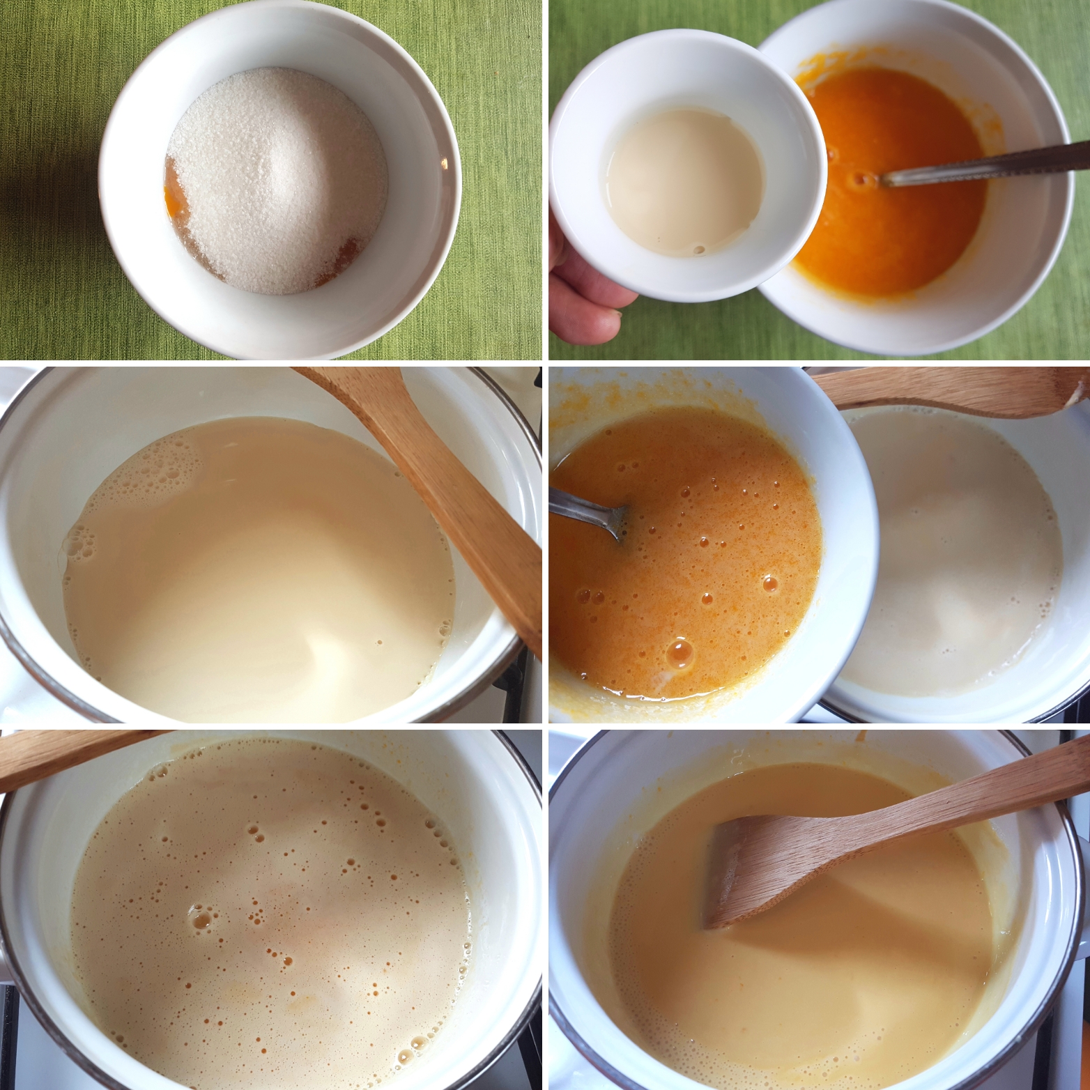- Kad mleko na šporetu proključa smanjite vatru, ulijte smesu od žumanaca i mešajte neprekidno.