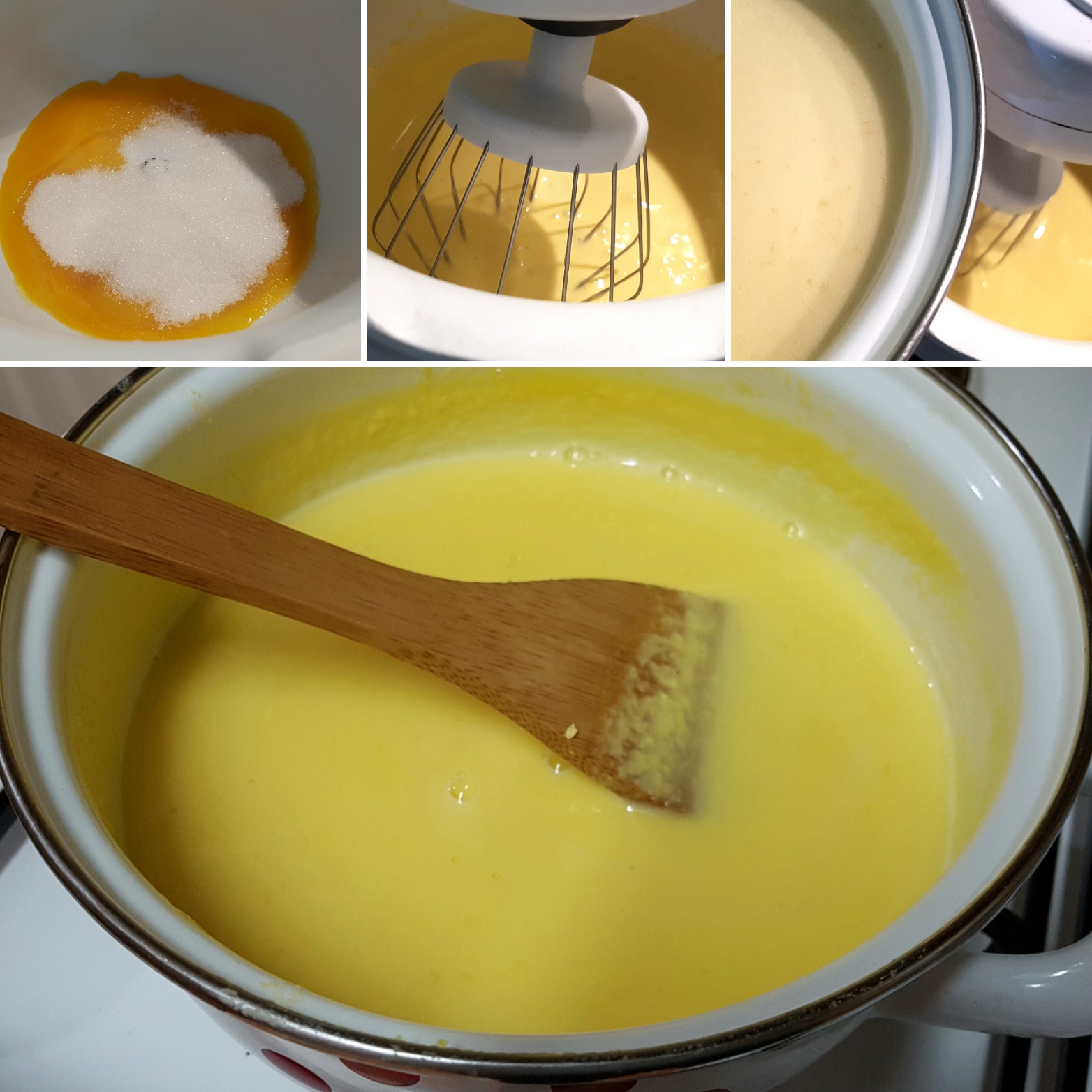 3. Umutite žumanca sa preostalim šećerom, te dolivajte u srednjem mlazu prohlađenu smesu i miksajte na najmanjoj brzini.