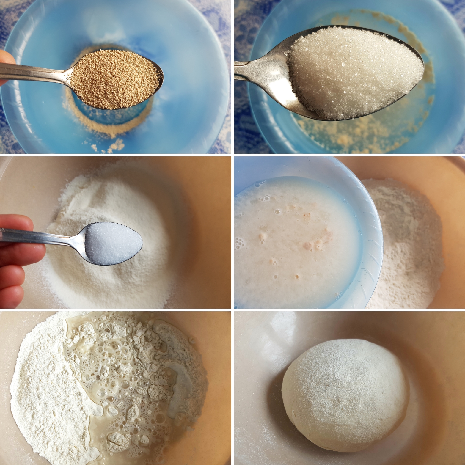 SAVET: Umesto suvog možete da koristite i svež – oko 15 g, a ako imate prirodni starter od brašna biće još sličniji nekadašnjem metodu. Ne koristim ga lično jer ne mesim hleb dovoljno često da bih opravdala miris kojim “aromatizuje” i frižider i ceo stan. 🙂 - U odgovarajuću posudu sipajte prosejano i meko i oštro brašno, dodajte so i nadošao kvasac, pa umesite meko testo.
