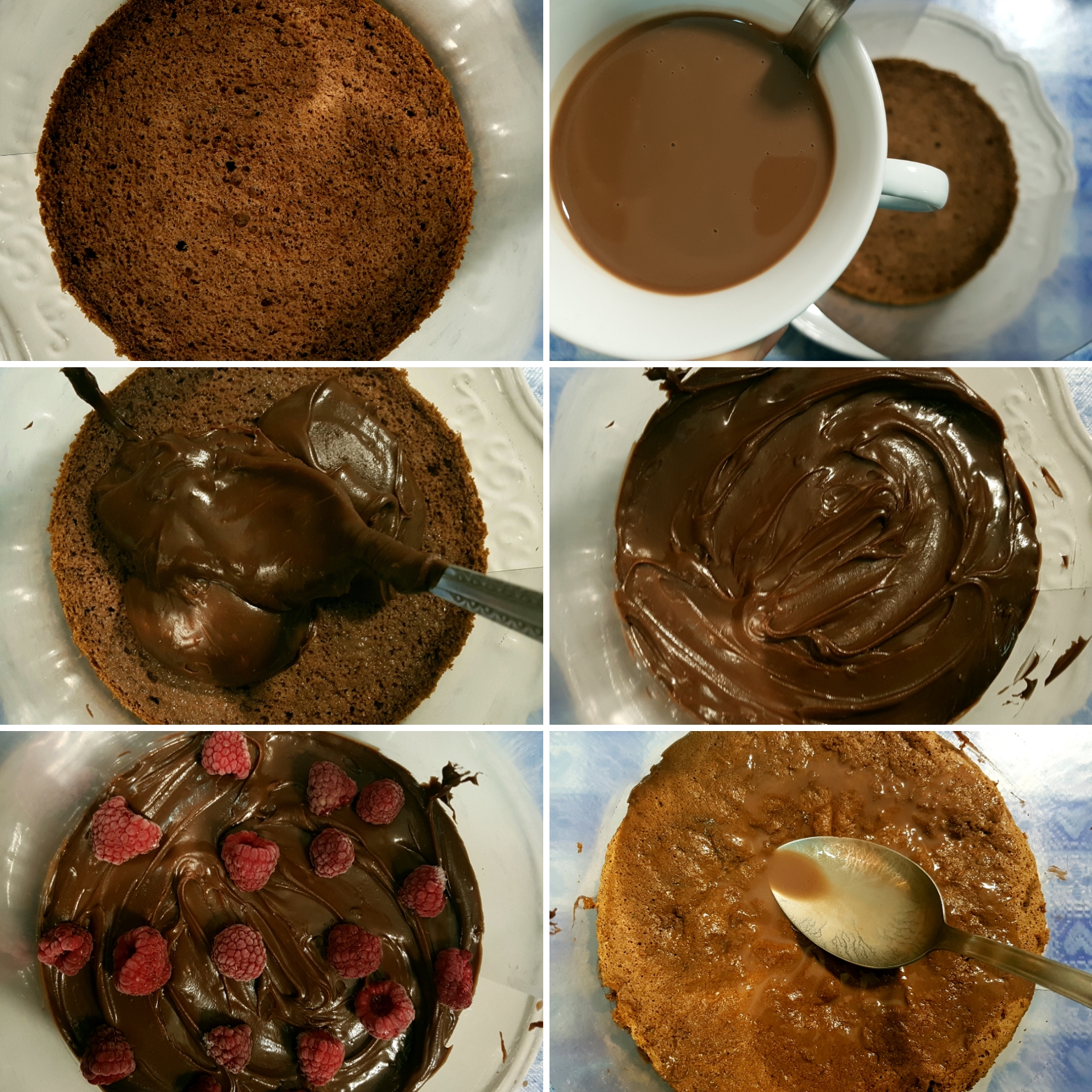 NAPOMENA: Ukoliko ste koru presekli na tri dela fil podelite na pola, te premažite polovinom prvu koru, stavite drugu, nanesite ostatak kreme i slaganje završite trećom korom. Sve ih naravno kvasite čokoladnim mlekom i ređajte maline na fil.