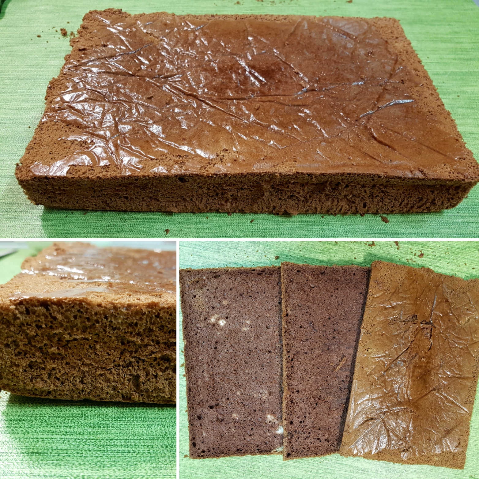 Napomena: Tortica na gornjim fotkama pravljena je od pola mere, te su od jednog biskvita isečene tri kore dok je ona na naslovnoj i fotografijama ispod presečena na četiri dela.