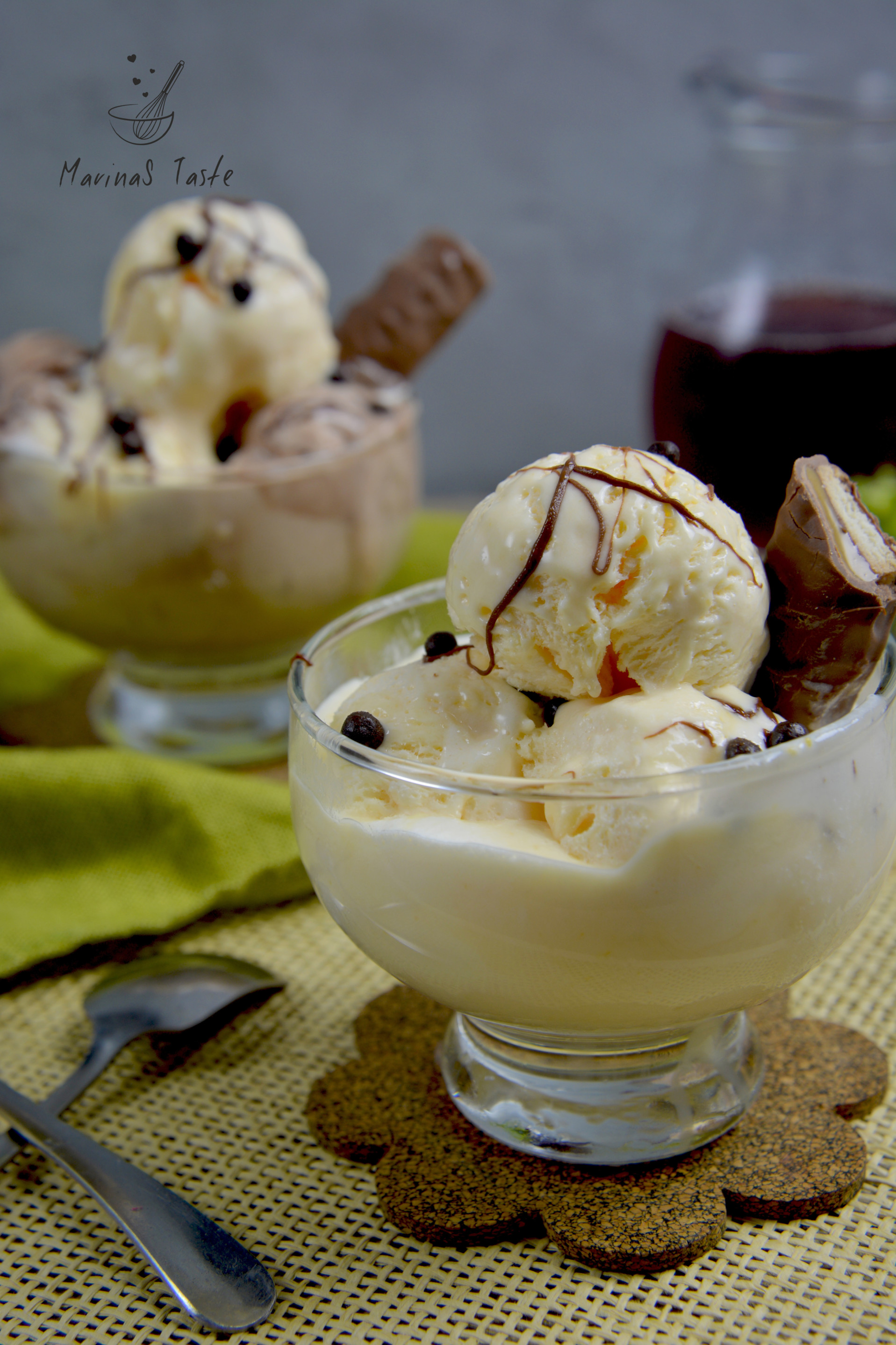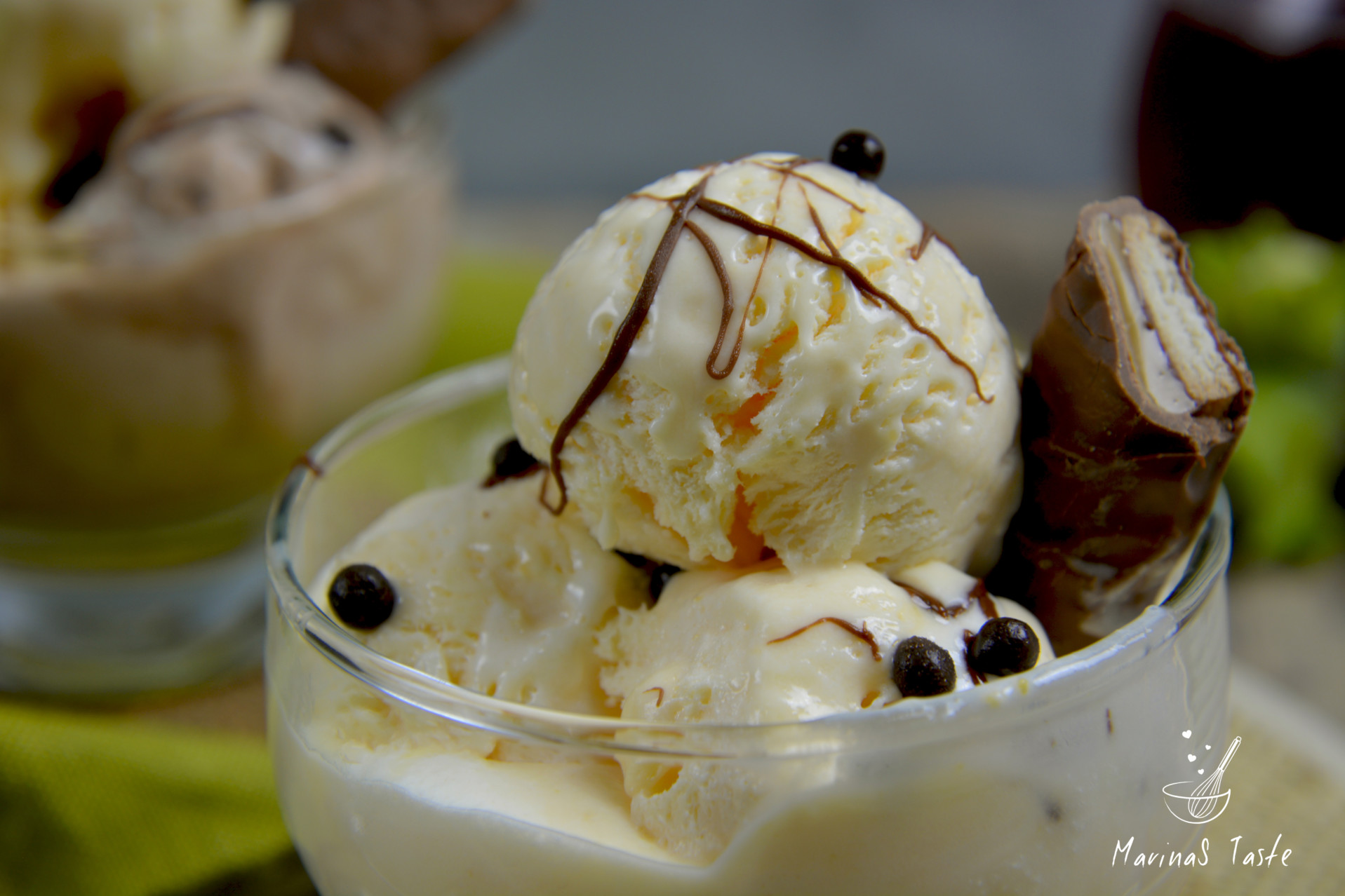 Ovo je sladoled mog detinjstva i seća me uvek na raspuste kod nađmame u jednom bačkom selu. Setim se i kako je moja draga nena (na mađarskom tetka) Klara vadila plastične kutijice iz velikog zamrzivača u hodniku i smejala se našem dečjem nestrpljenju. Kad sam porasla dovoljno da mogu sama da ga napravim tetka mi je dala ovaj recept i ja ga prenosim vama nepromenjenog osim dela gde je ona koristila “živa” (termički neobrađena) žumanca.