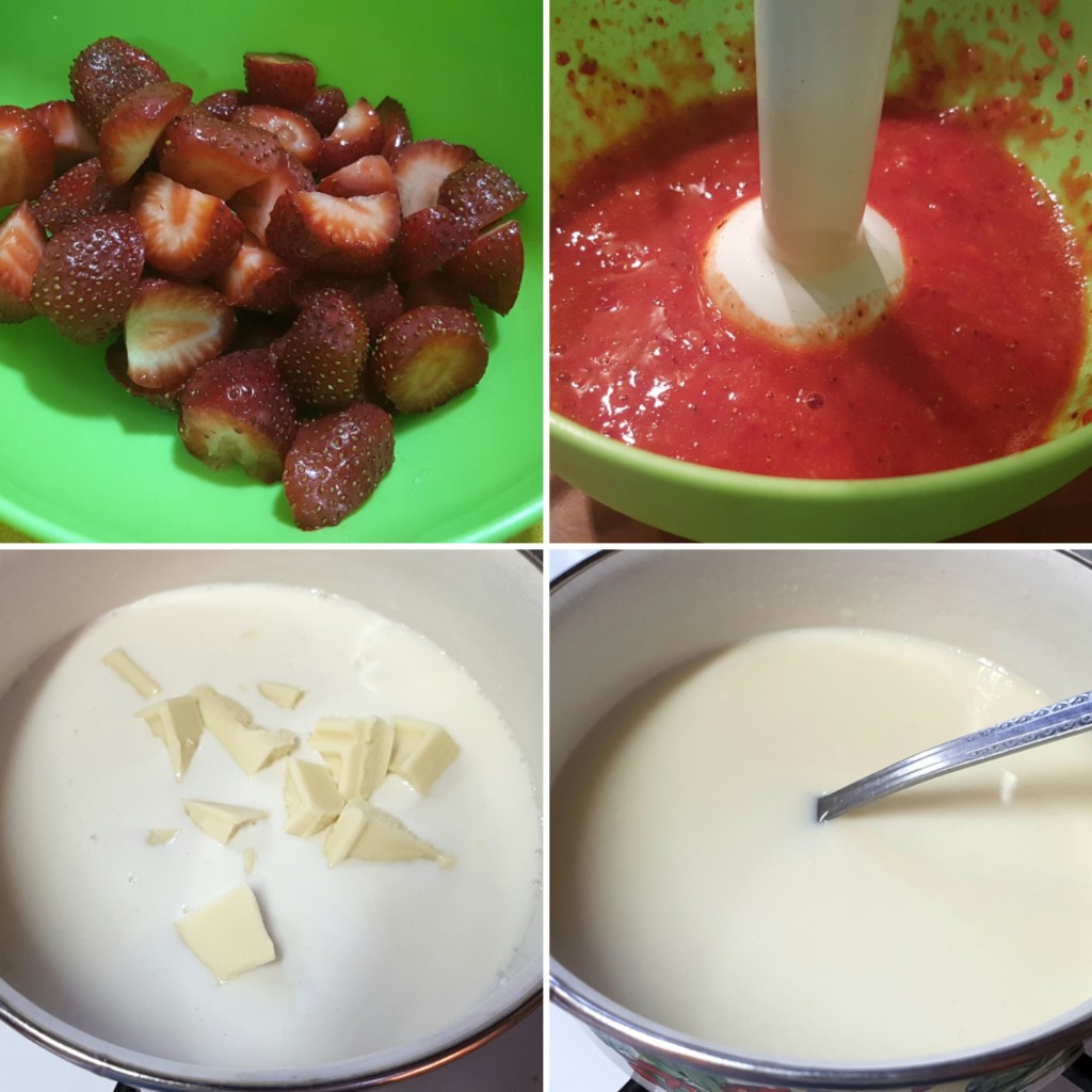 Priprema pirea od jagoda i ganaša od bele čokolade |