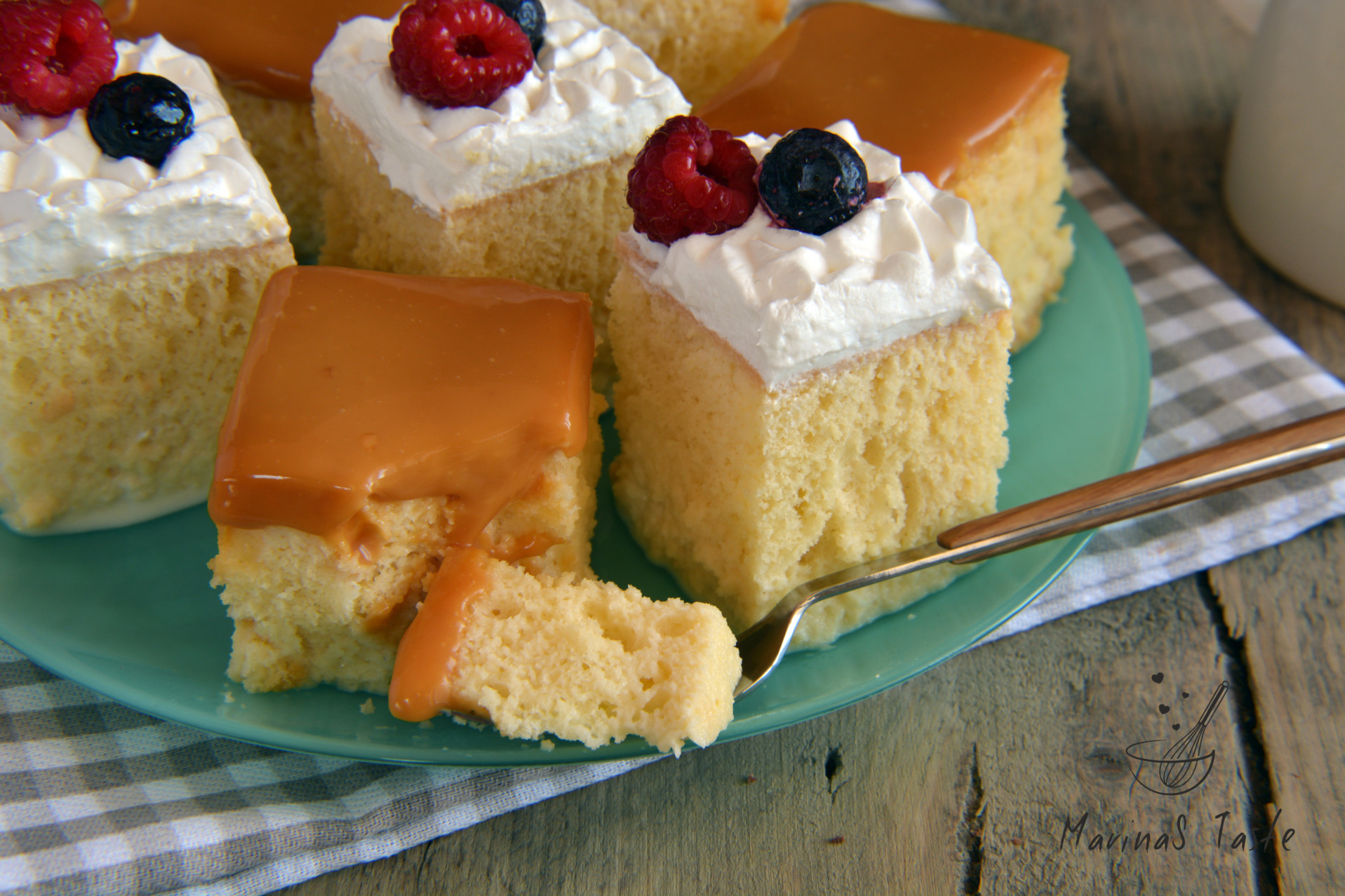 Tri leće (“tres leches“) kolač nisam na žalost probala u nekoj starinskoj poslastičarnici na jugu Balkana nego sam za njega saznala putem interneta. Zaintrigirala me tolika popularnost, pa sam pročitavši priličan broj recepata došla do kombinacije koja mi se činila najlogičnijom.Inače ovaj slatkiš je poreklom sa južnoameričkog podneblja, a kod nas su ga proslavili albanski poslastičari. Naziv “tri leće” doslovno znači tri mleka i odnosi se na prvobitnu upotrebu kravljeg, kozjeg i bivoljeg mleka, dok modernija verzija podrazumeva mleko, slatku pavlaku i kondenzovano ili mleko u prahu.