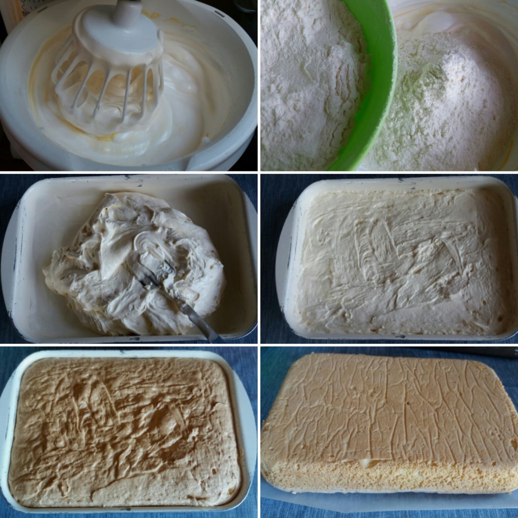 - Pečen biskvit istresite na radnu površinu tako da mu donja strana sad bude gore i ostavite ga da se hladi. Ohlađen izbockajte štapićem za ražnjić.